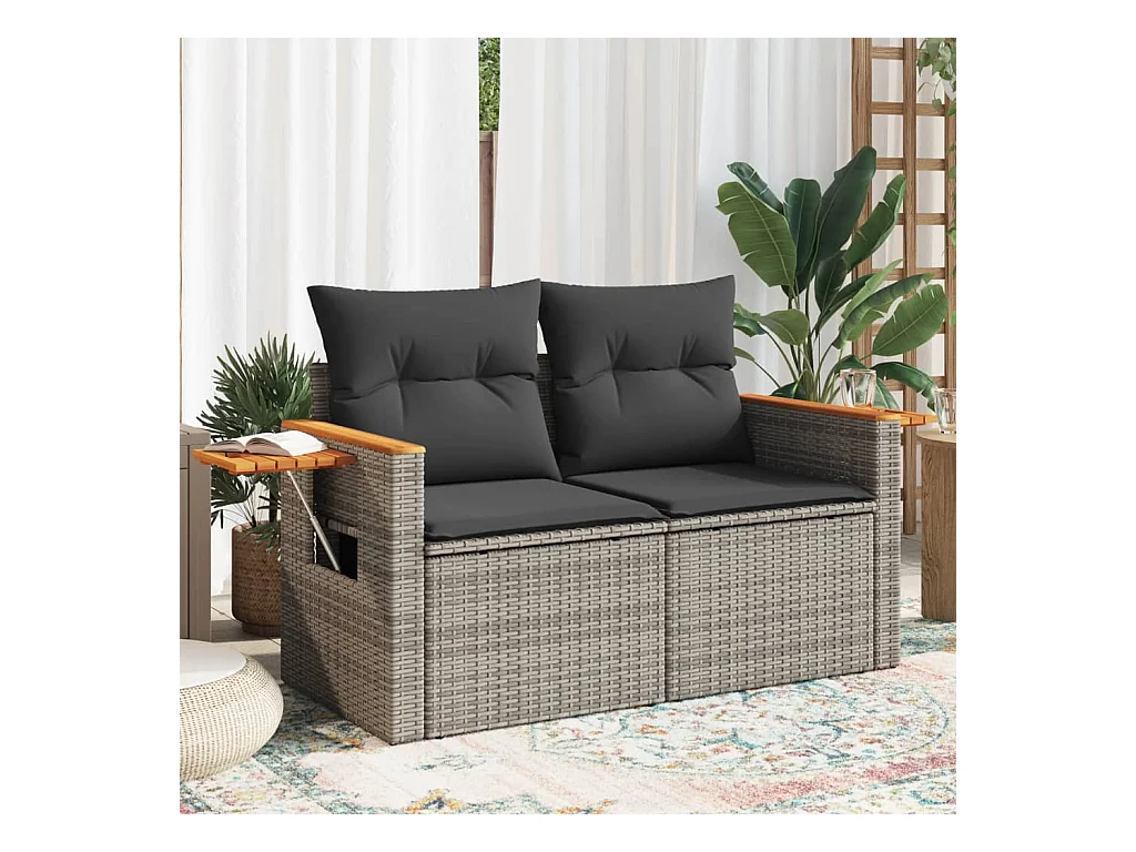 Sofá de jardín con cojines 2 plazas ratán sintético gris KOW74550
