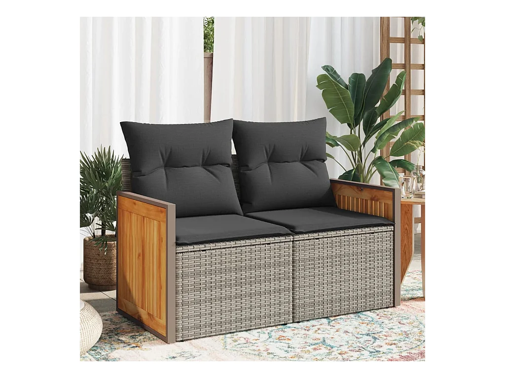 Sofá de jardín con cojines 2 plazas ratán sintético gris KOW89784