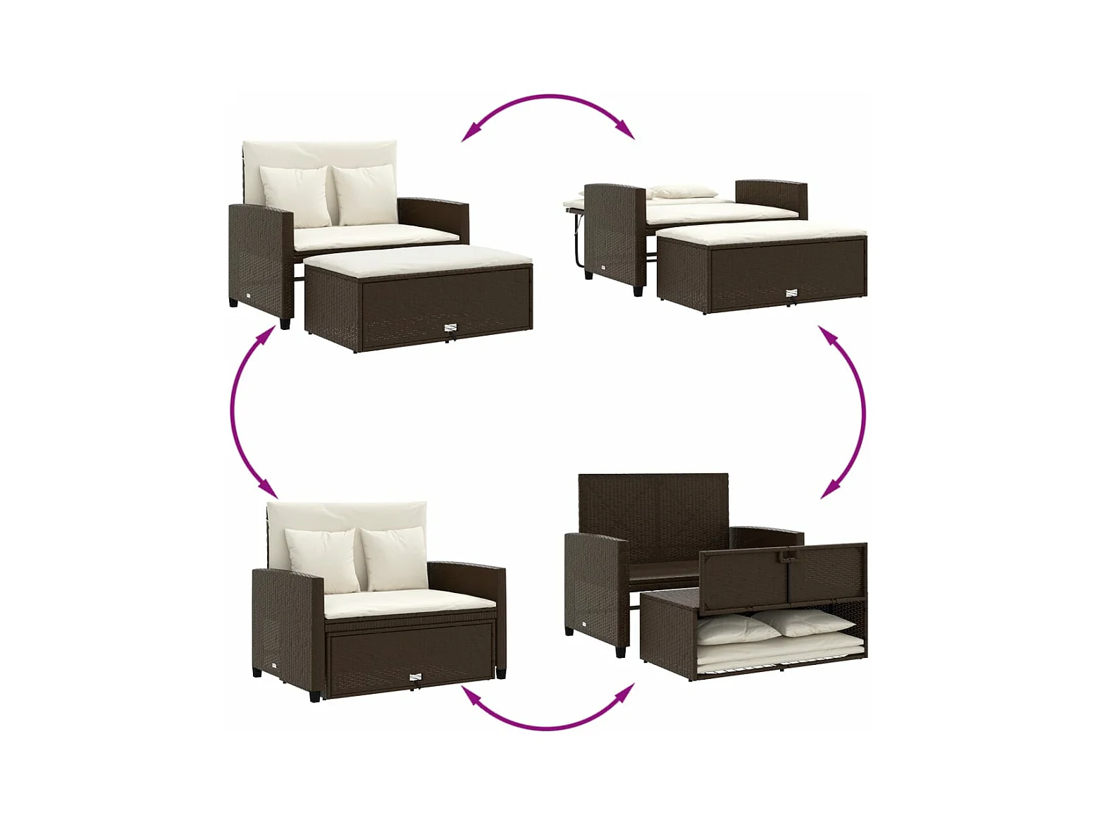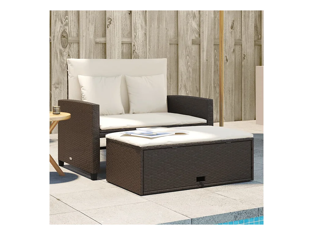 Sofá de jardín reclinable de 2 plazas con mesa ratán PE marrón ES270779