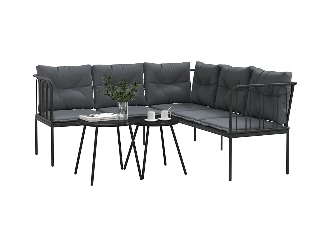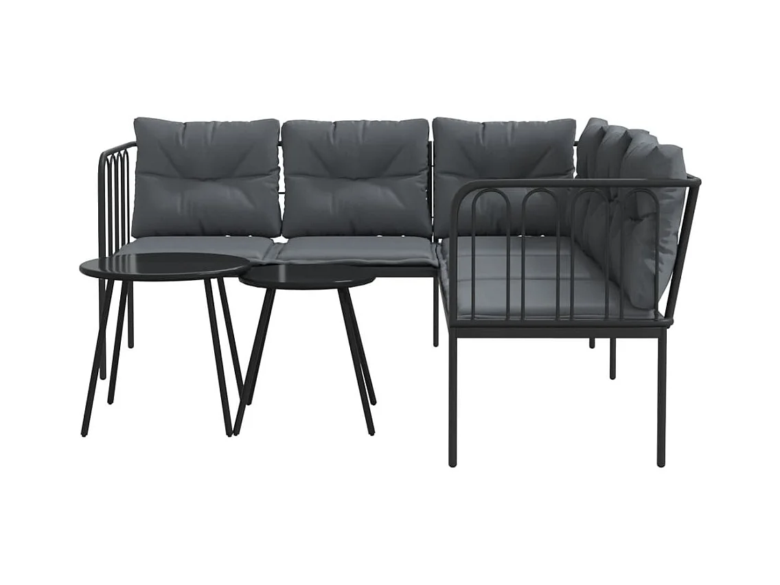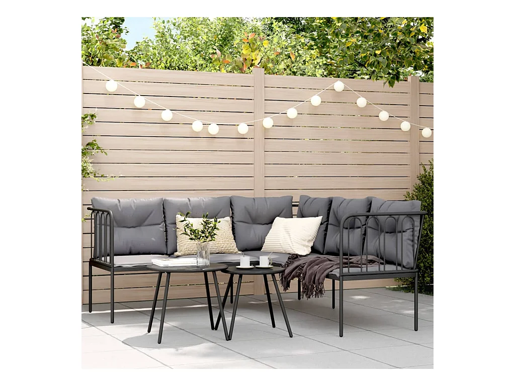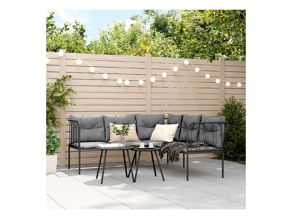 Sofá de jardín con cojines acero y textilene negro ES450717