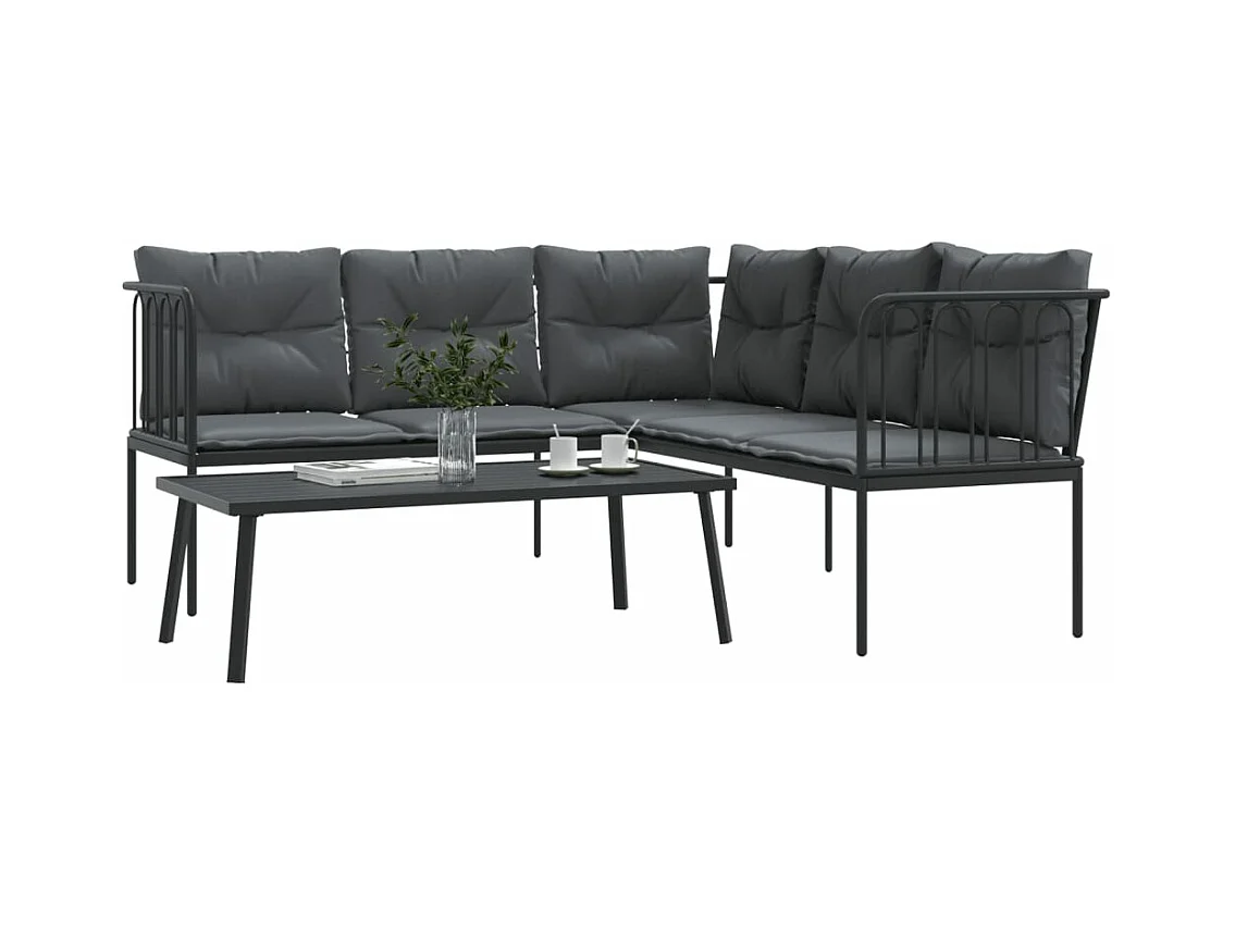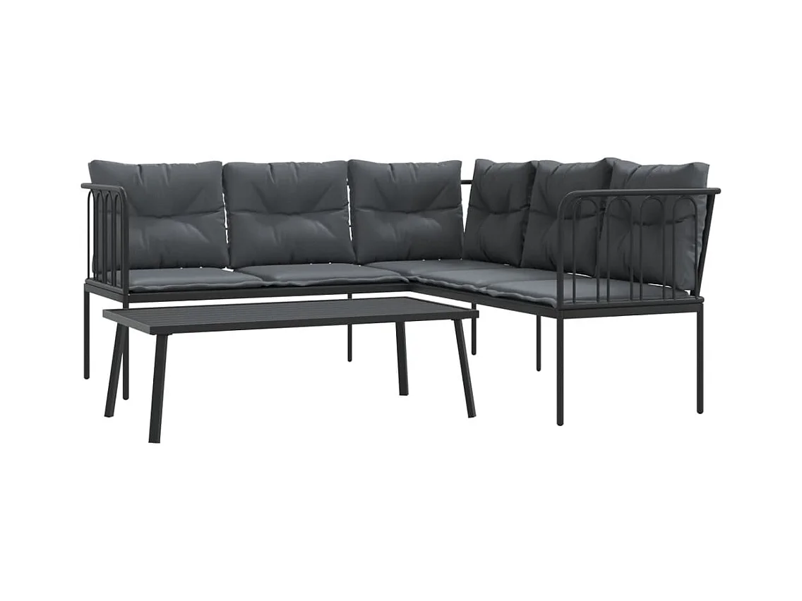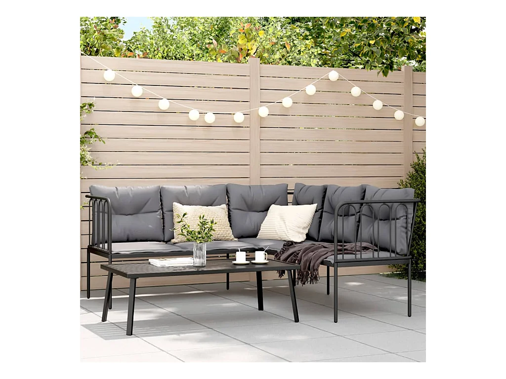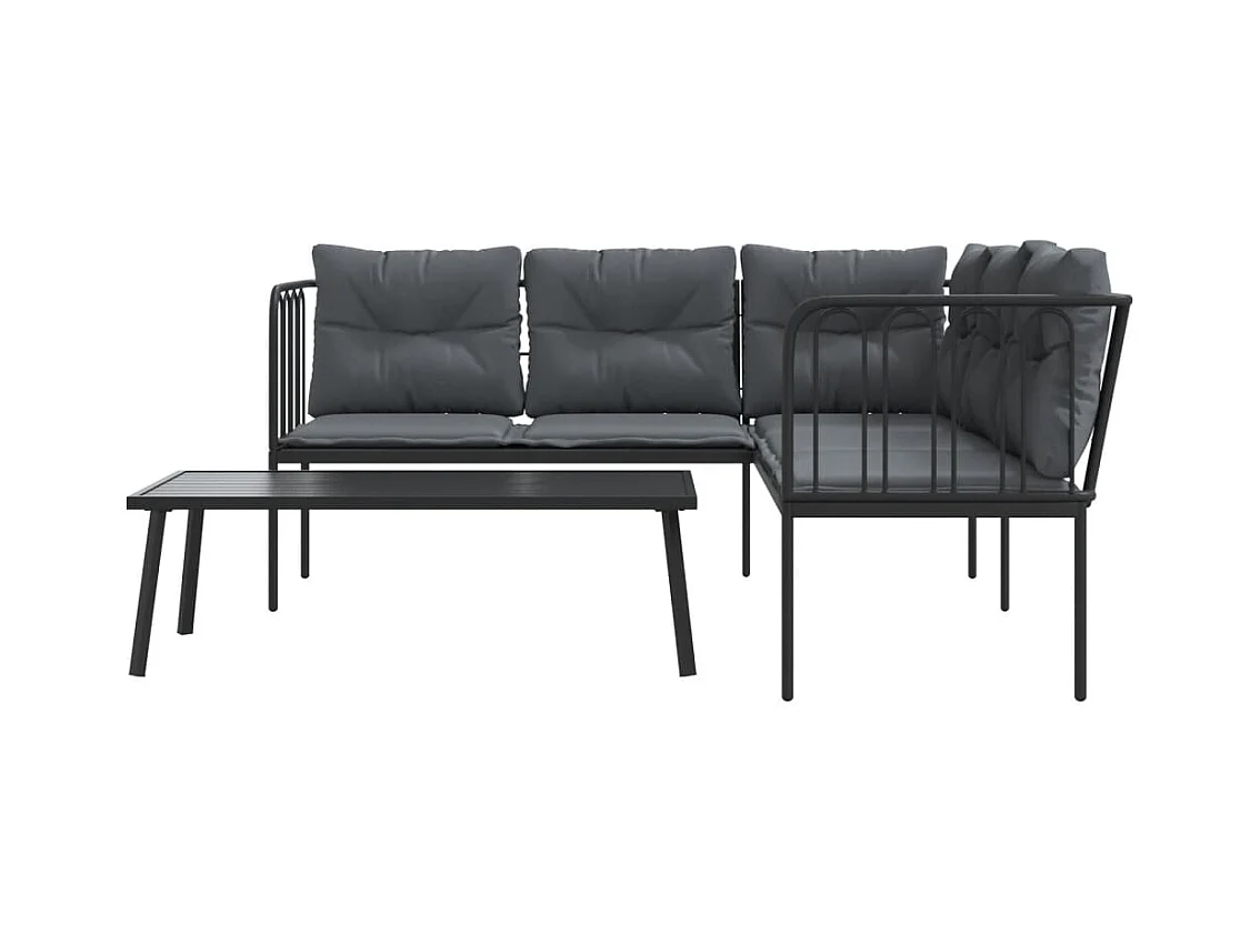Sofá de jardín con cojines acero y textilene negro ES450717