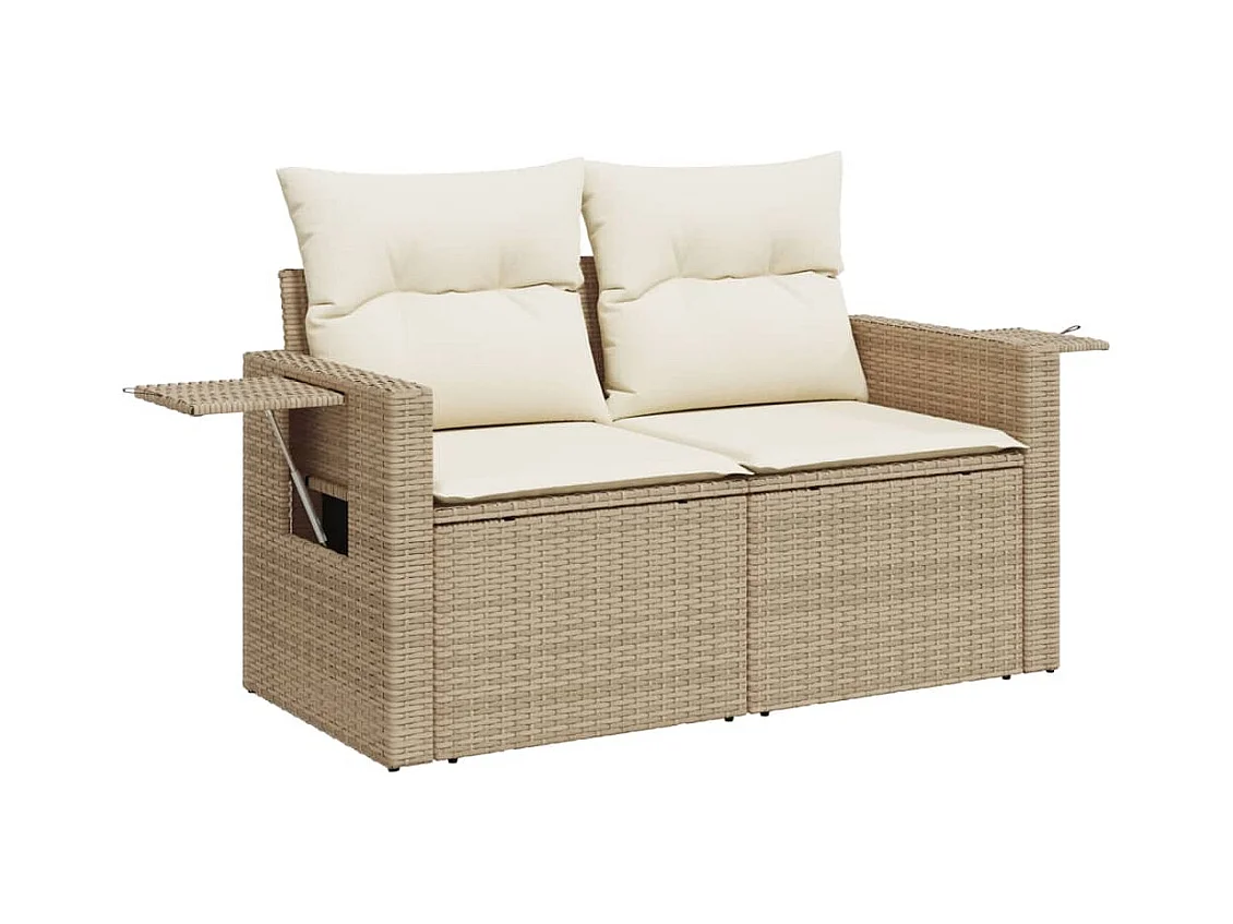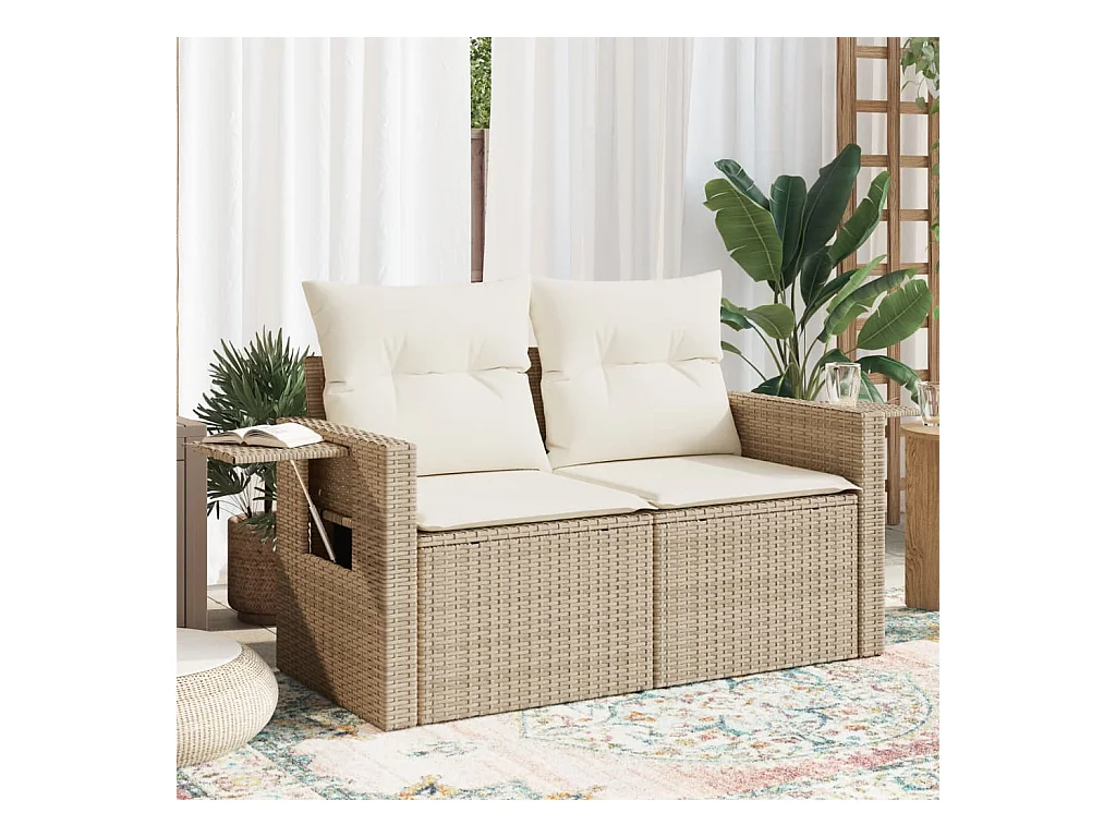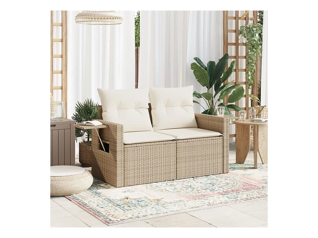 Sofá de jardín con cojines de 2 plazas ratán sintético beige