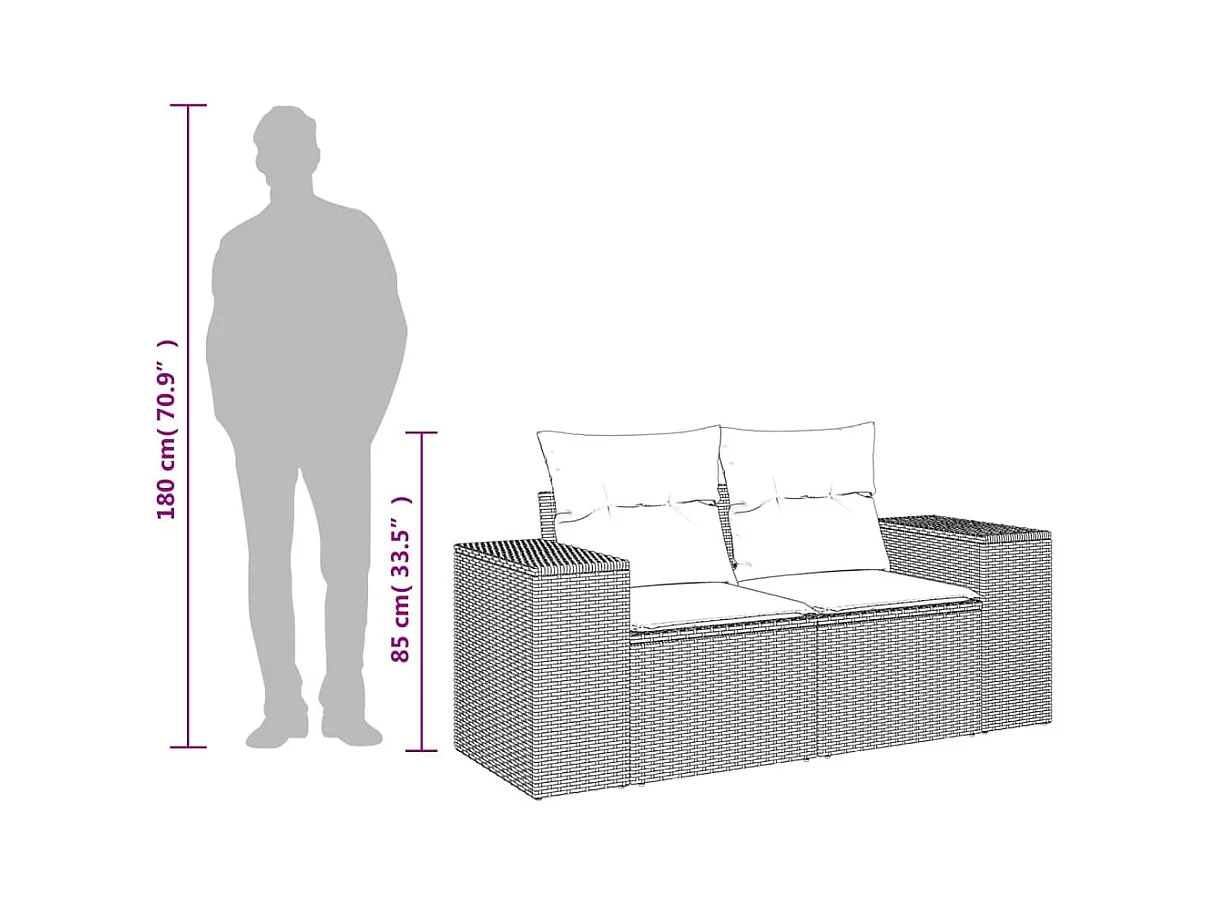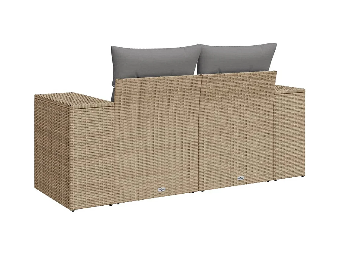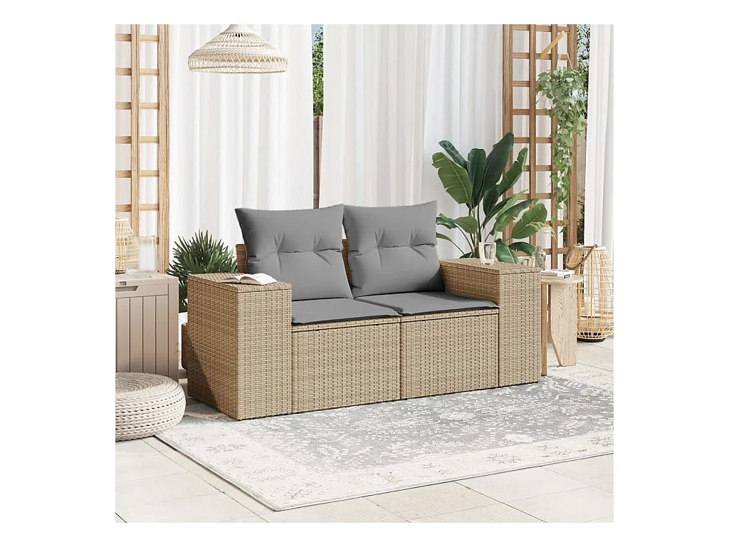 Sofá de jardín con cojines de resina tejida de 2 plazas beige