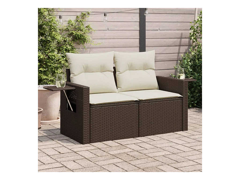 Sofá de jardín con cojines de resina trenzada de 2 plazas marrón