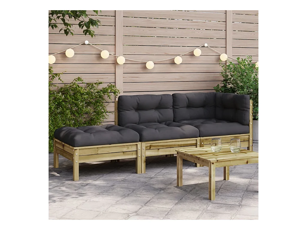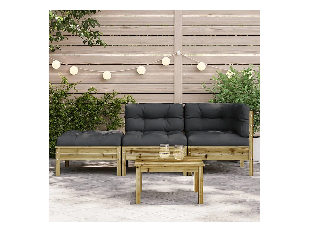 Sofá de jardín con cojines y reposapiés de 2 plazas.