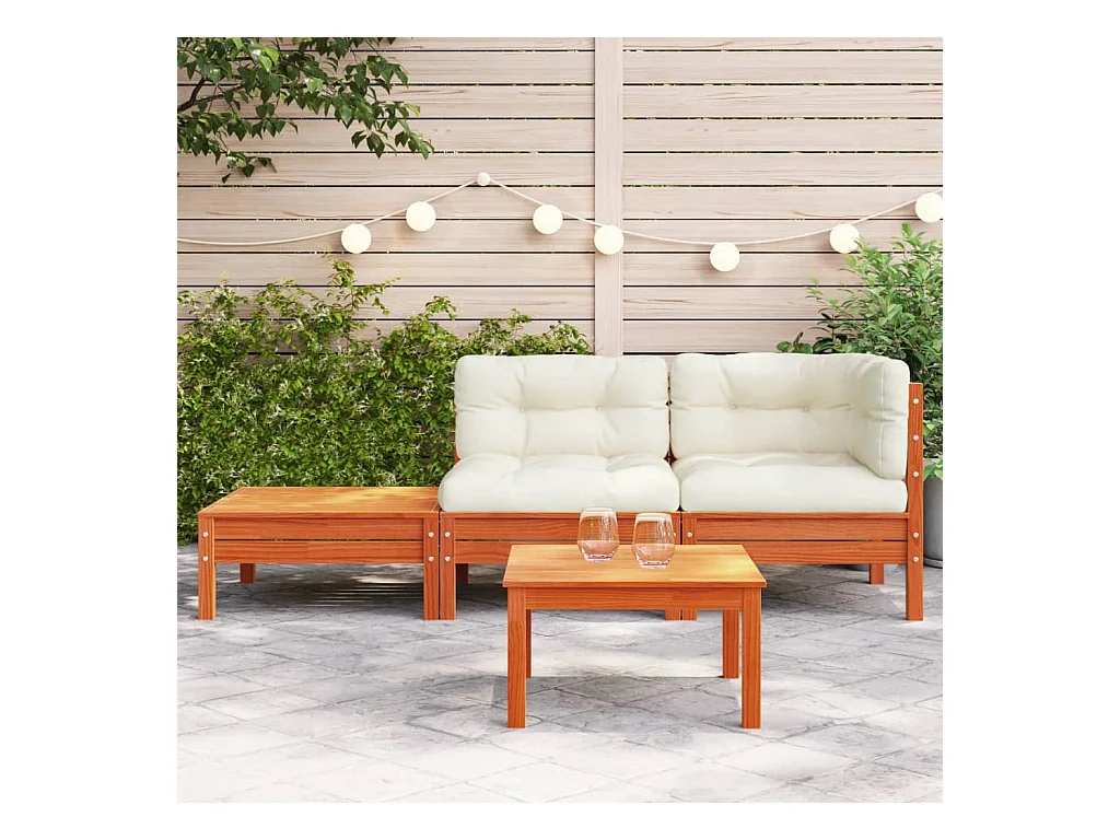 Sofá de jardín con cojines y reposapiés de madera maciza de pino