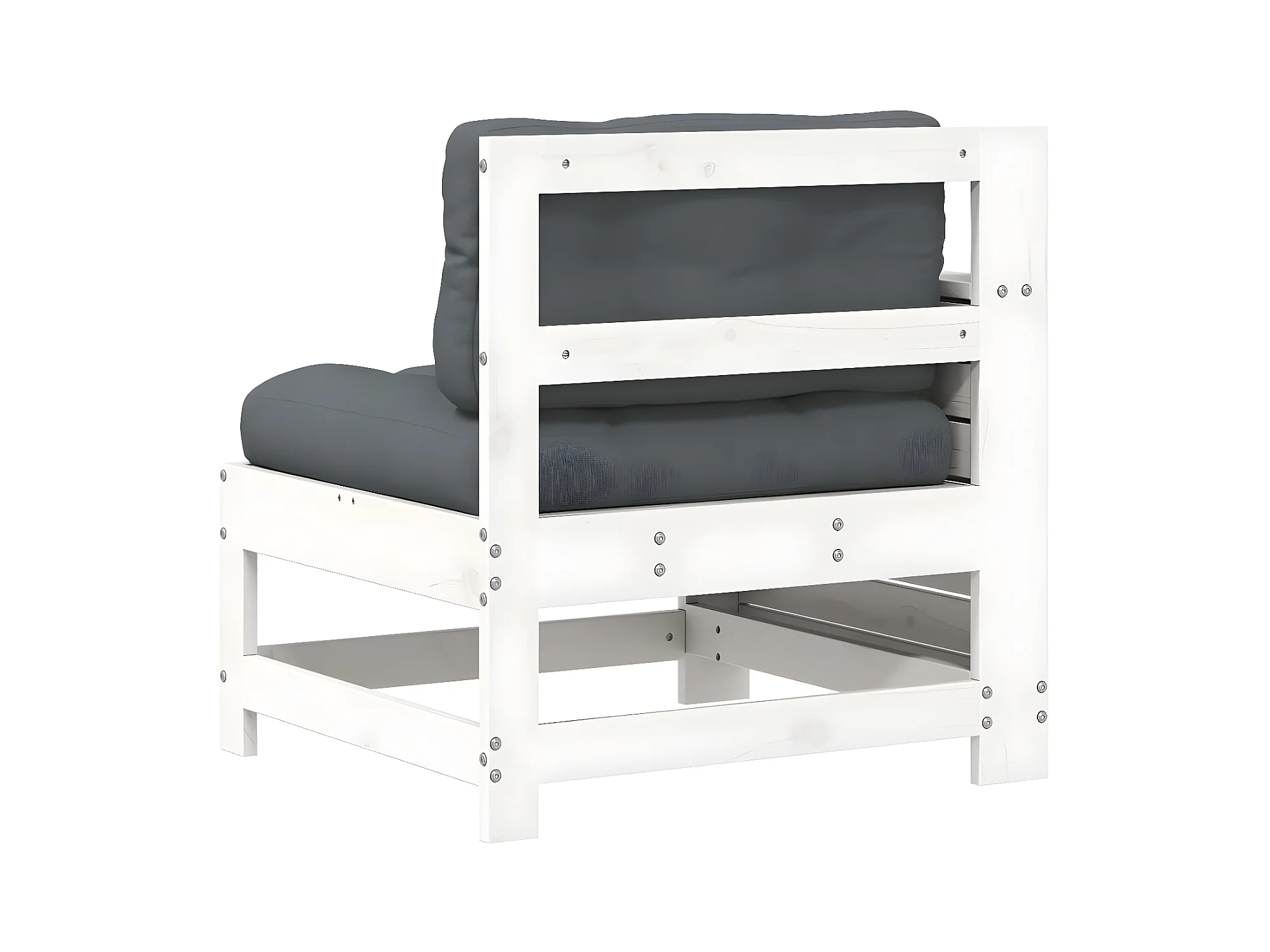 Sofá de jardín con reposabrazos y cojín blanco de madera maciza de pino