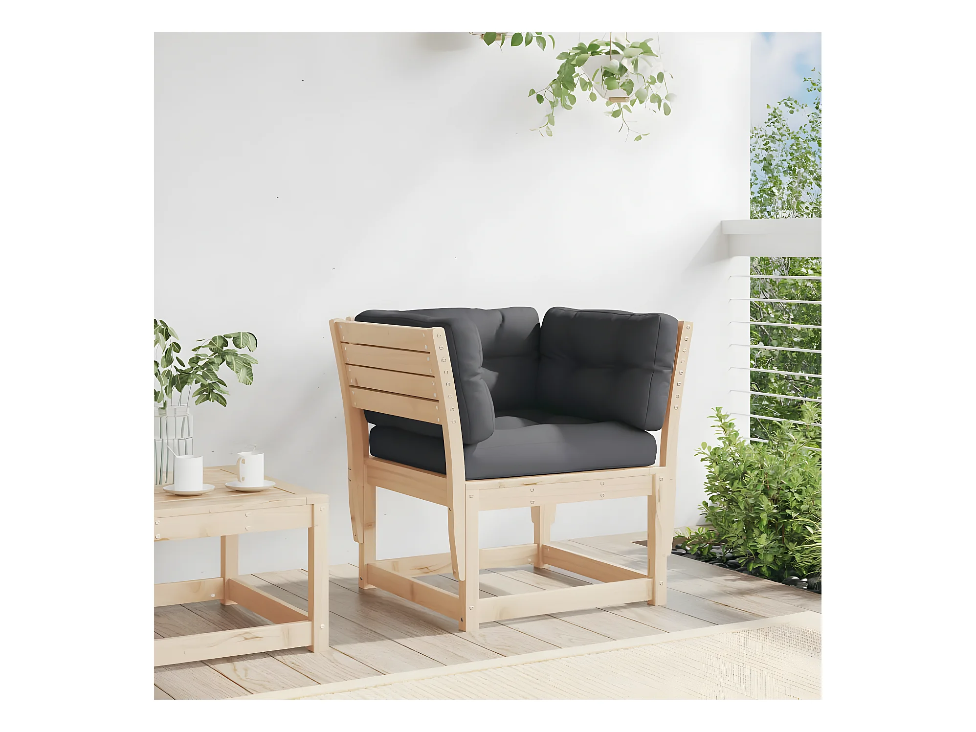 Sofá de jardín con reposabrazos y cojines de madera de pino impregnada