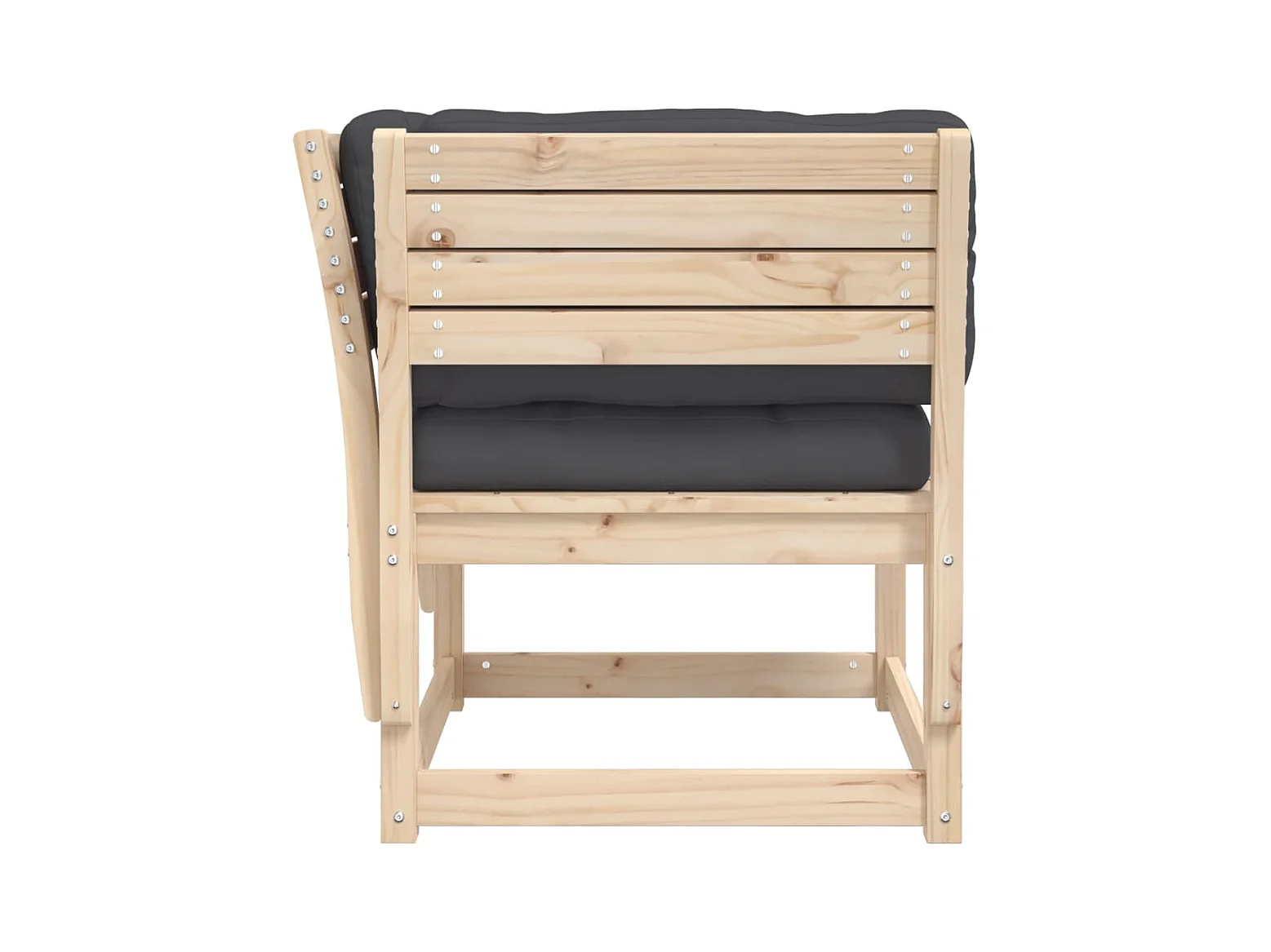 Sofá de jardín con reposabrazos y cojines de madera maciza de pino.