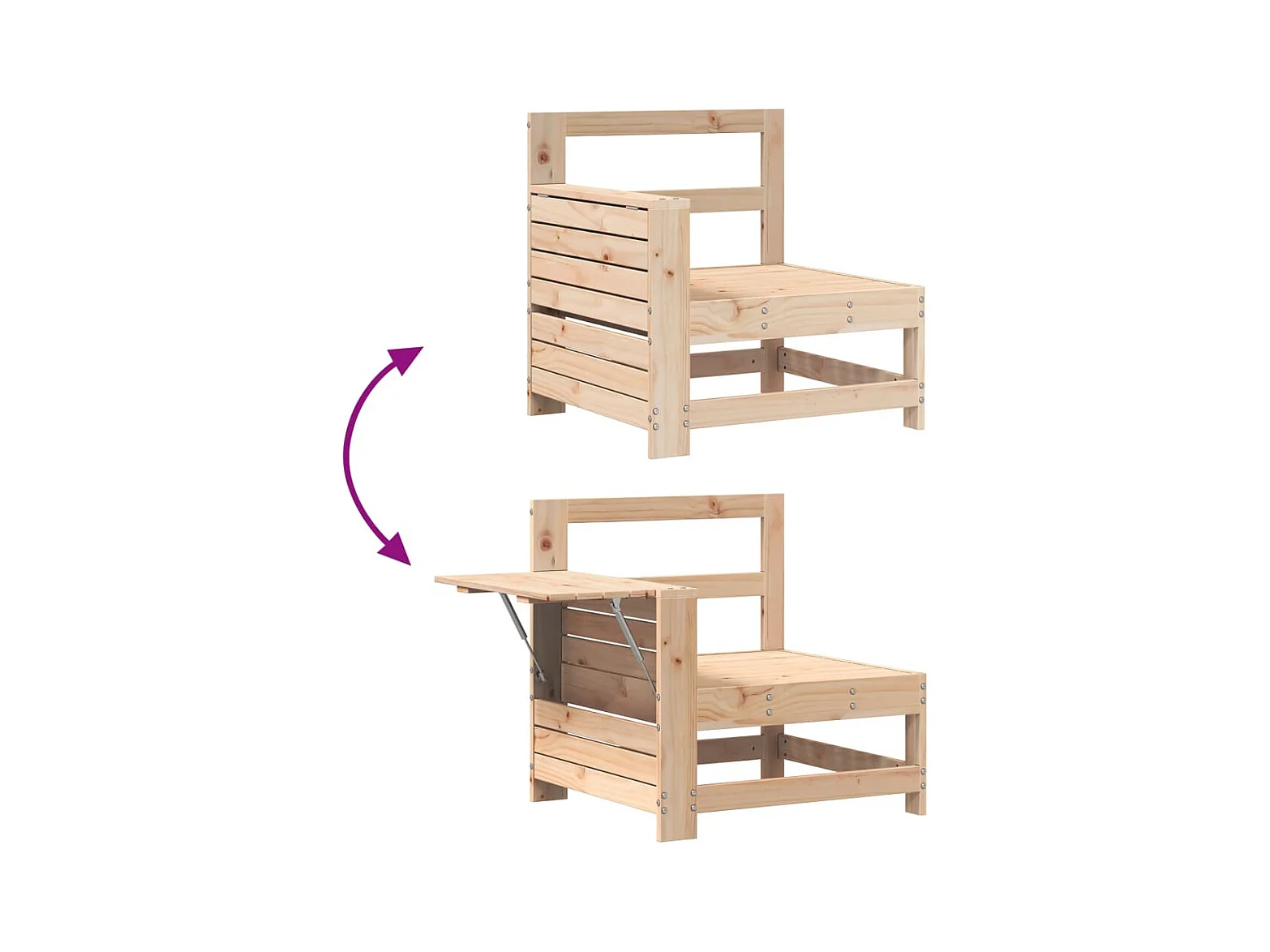 Sofá de jardín con reposabrazos y mesa auxiliar de madera maciza de pino