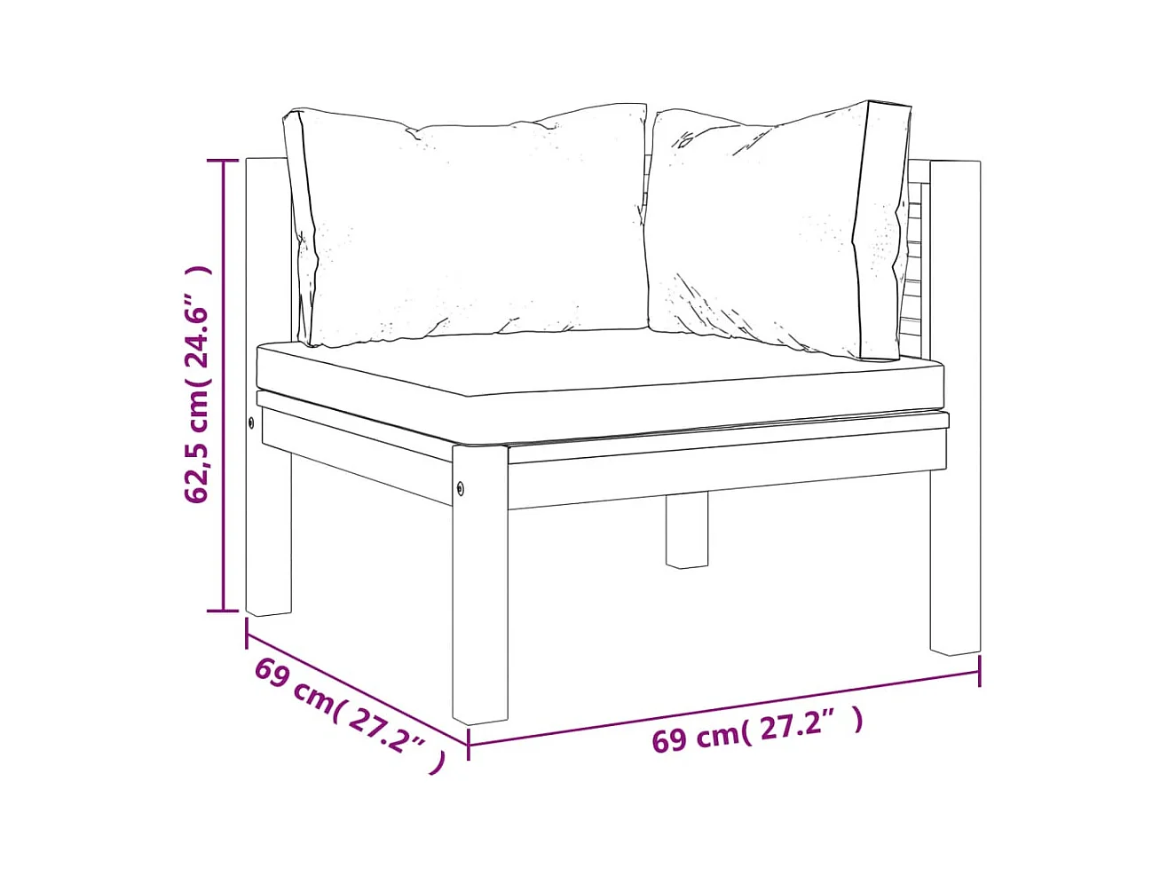 Sofá de esquina de jardín madera maciza de pino gris KOW42078