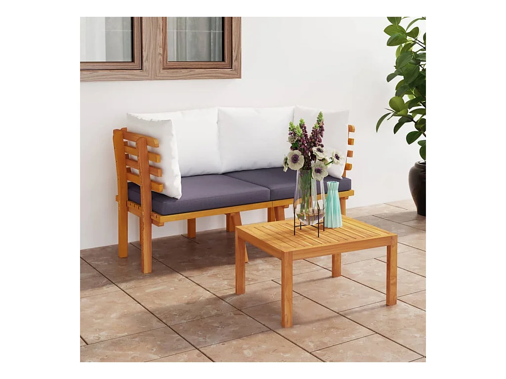 Sofá de jardín de 2 plazas con cojines madera maciza de acacia ES861241