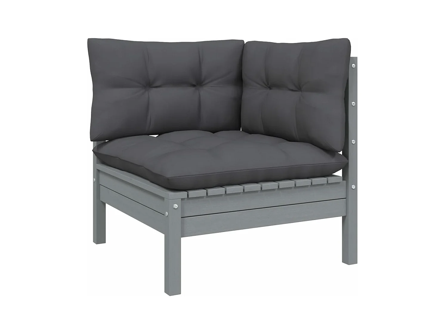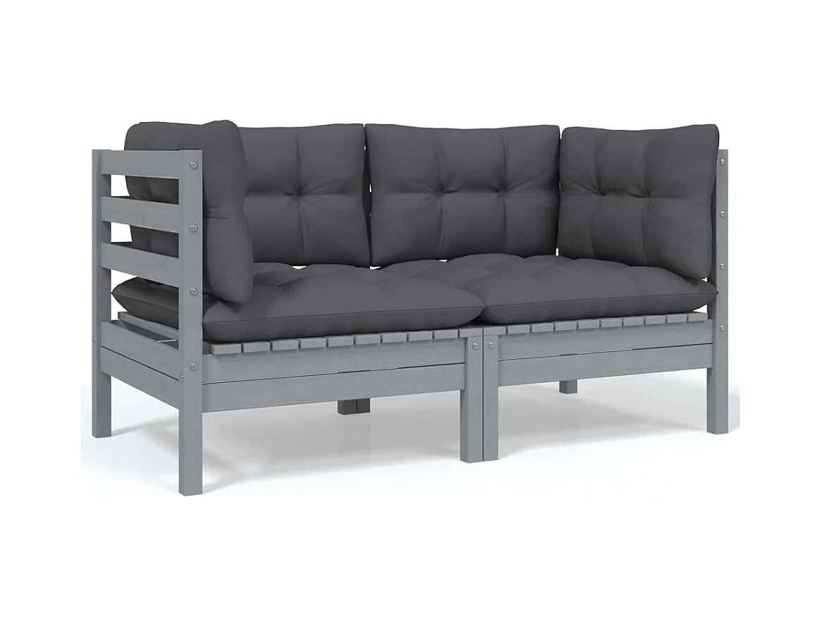 Sofá de jardín de 2 plazas con cojines madera maciza pino gris ES819858