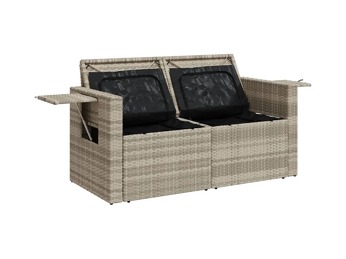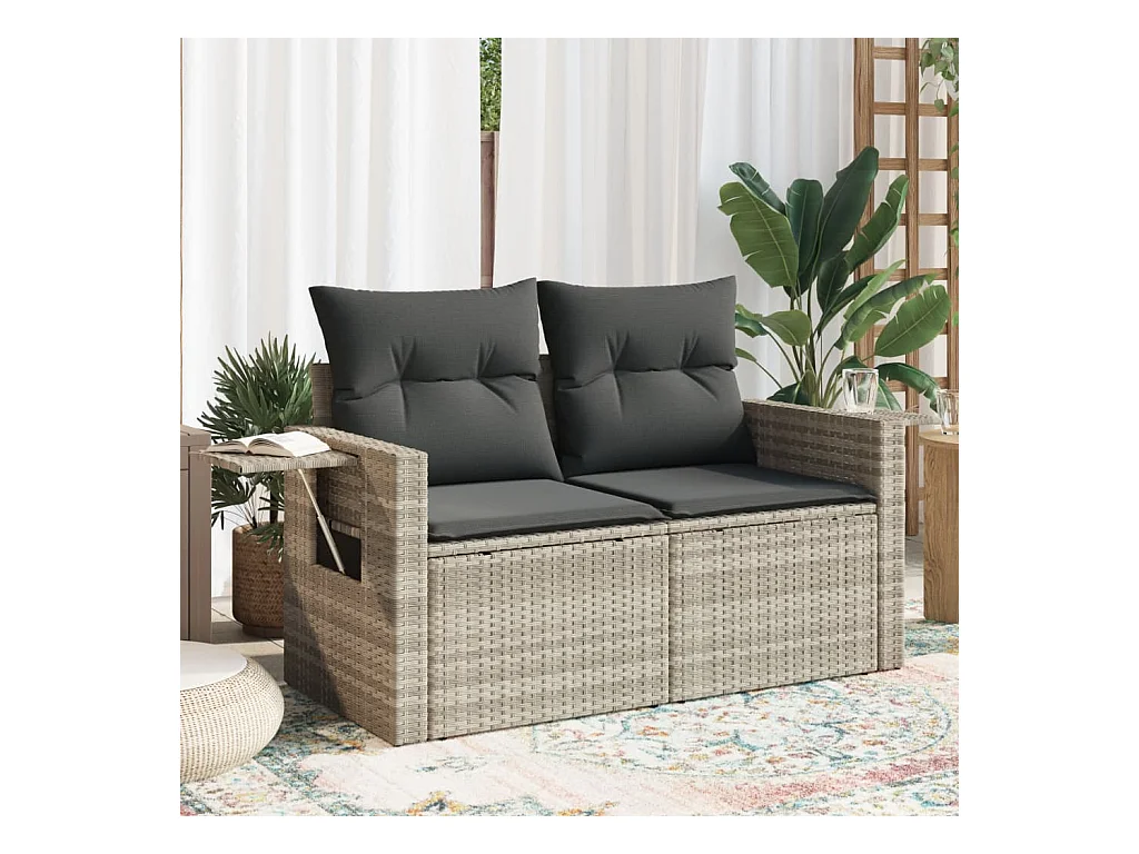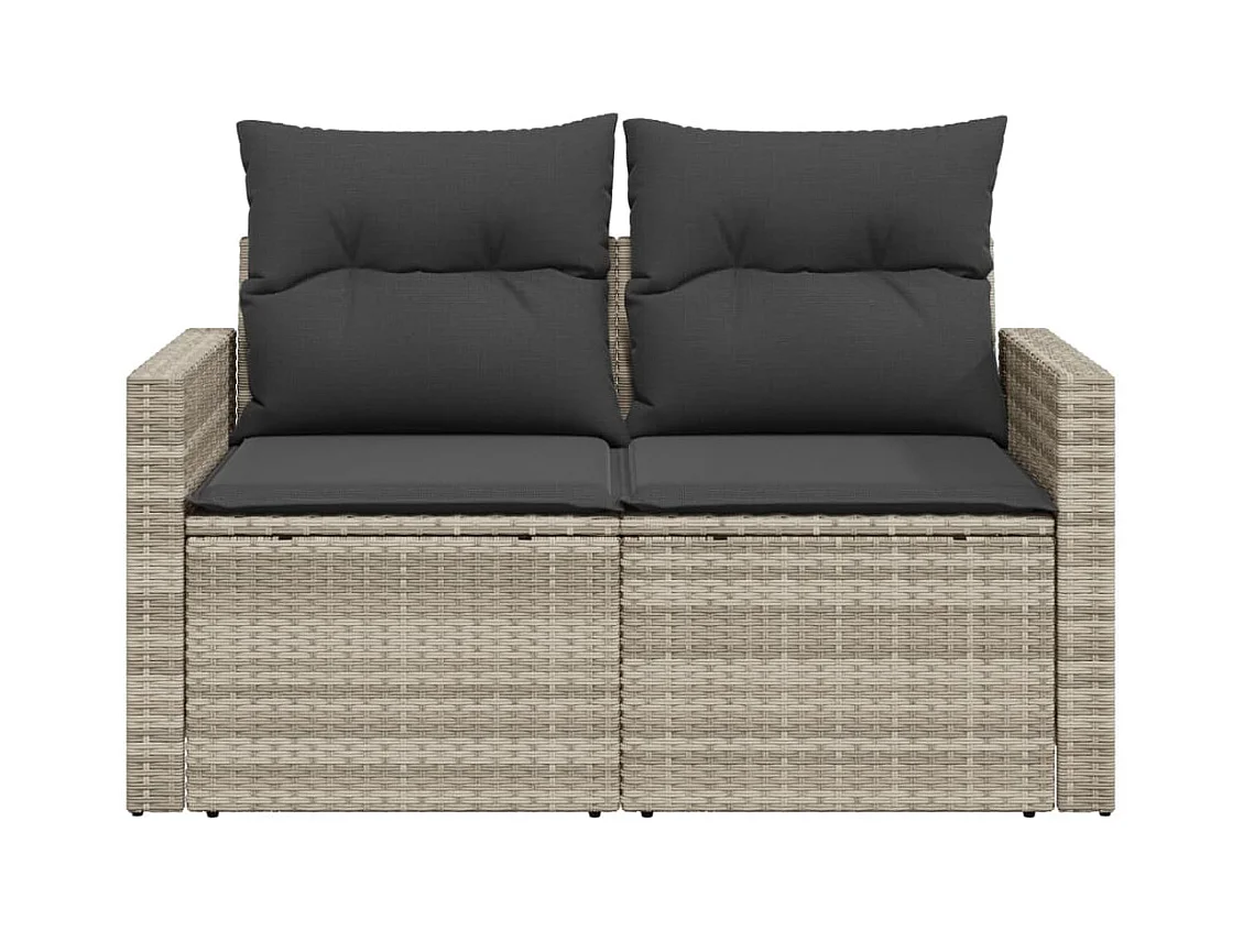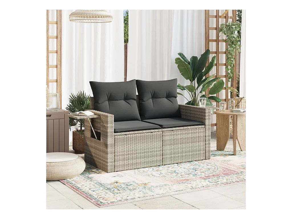 Sofá de jardín de 2 plazas y cojines de resina trenzada gris claro