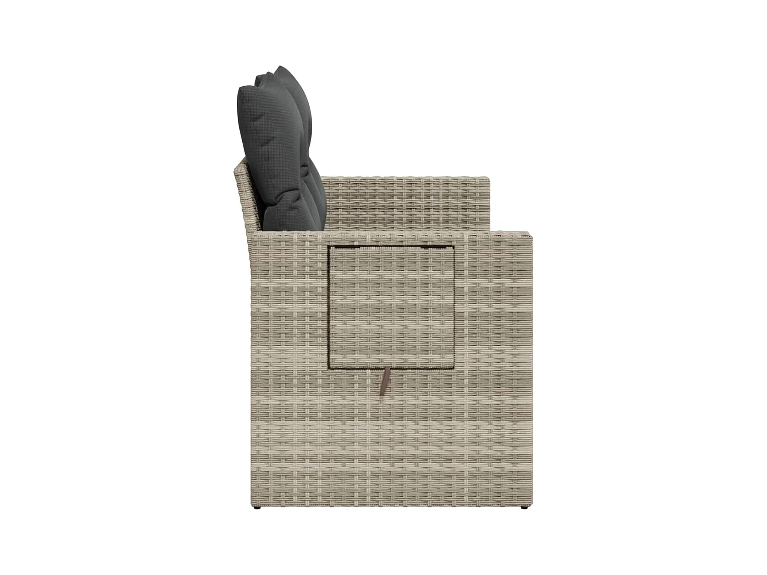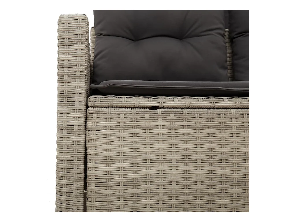 Sofá de jardín sin reposabrazos con cojines de polirratán gris claro