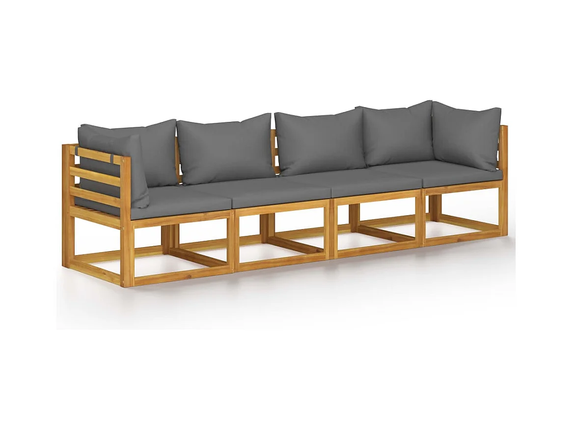 Sofá de jardín de 4 plazas con cojín madera maciza de acacia