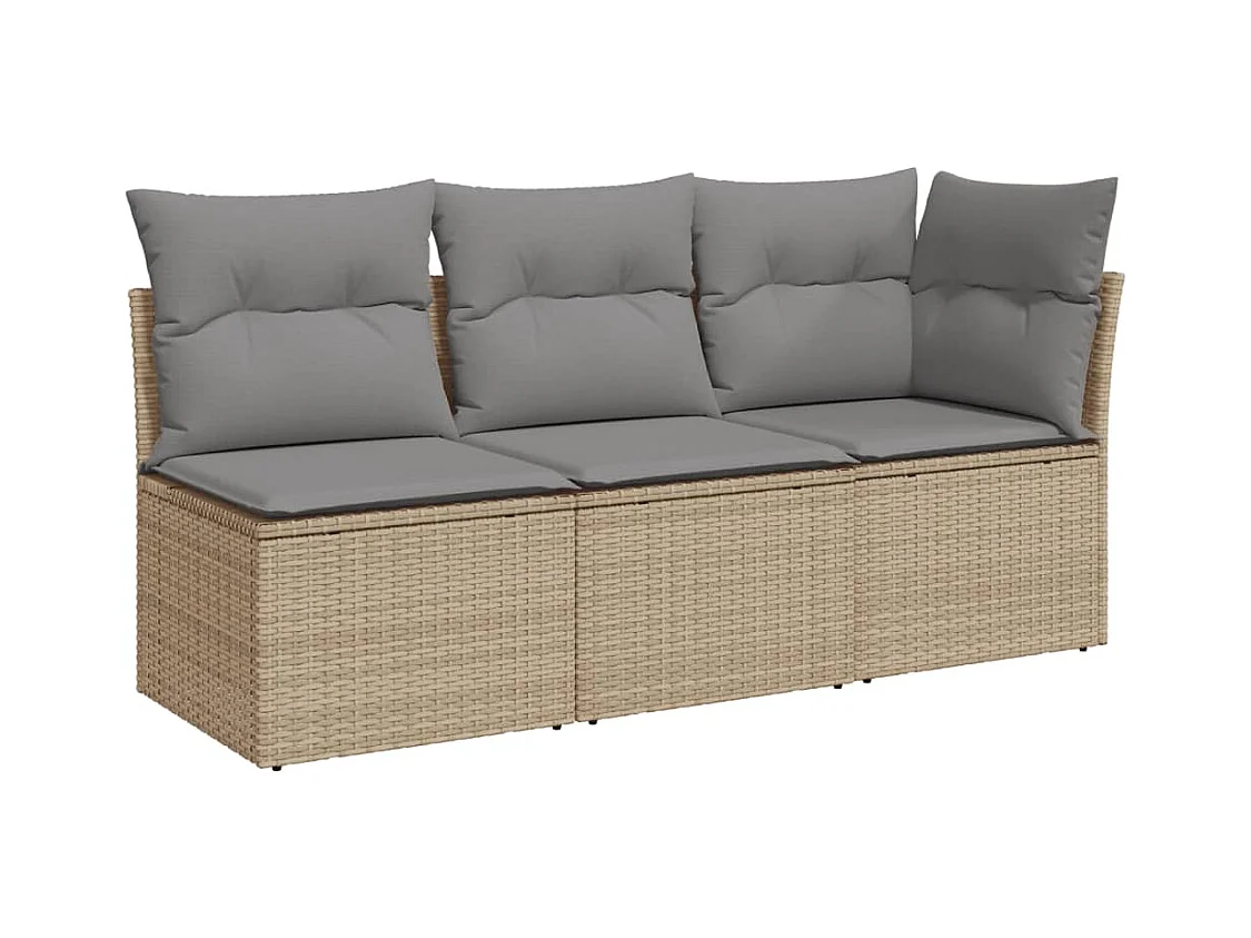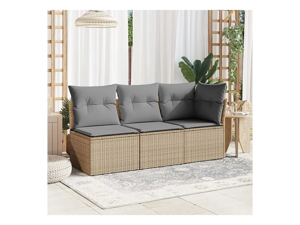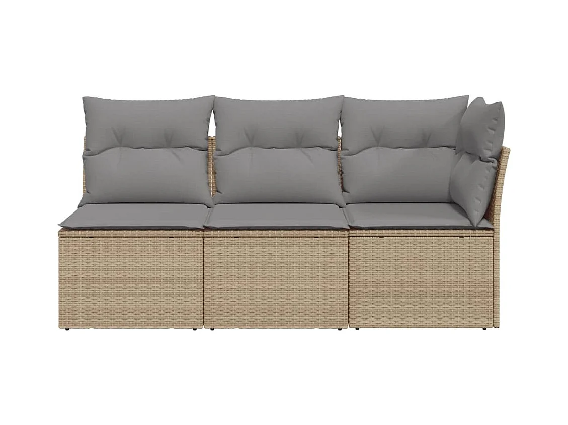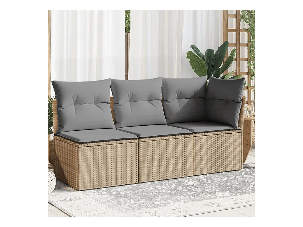 Sofá de jardín de 3 plazas con cojines ratán sintético beige