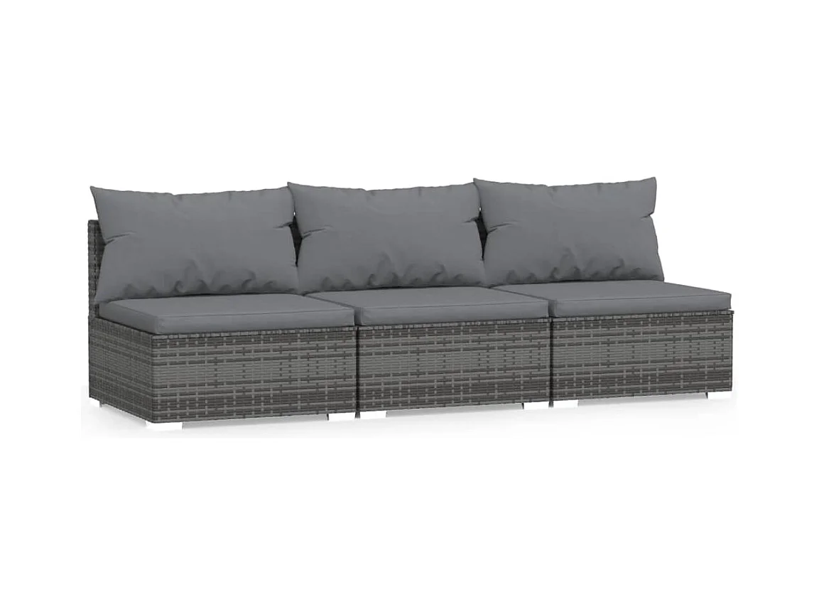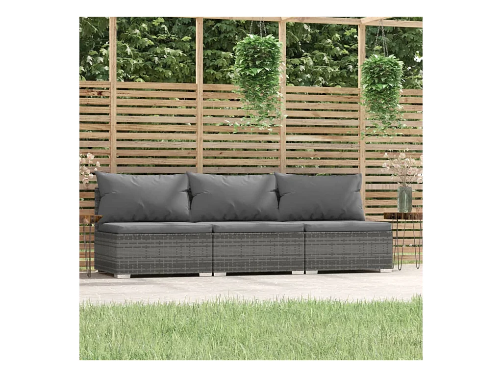 Sofá de jardín de 3 plazas con cojines ratán sintético gris