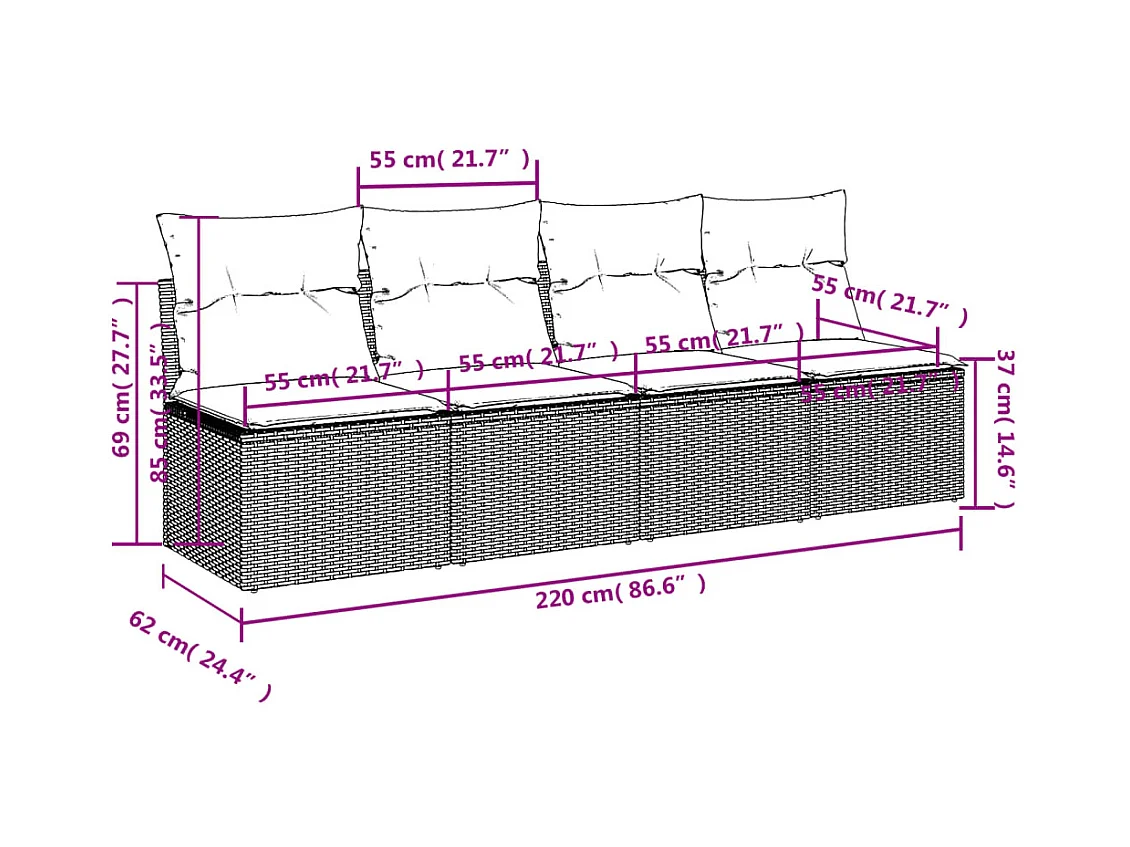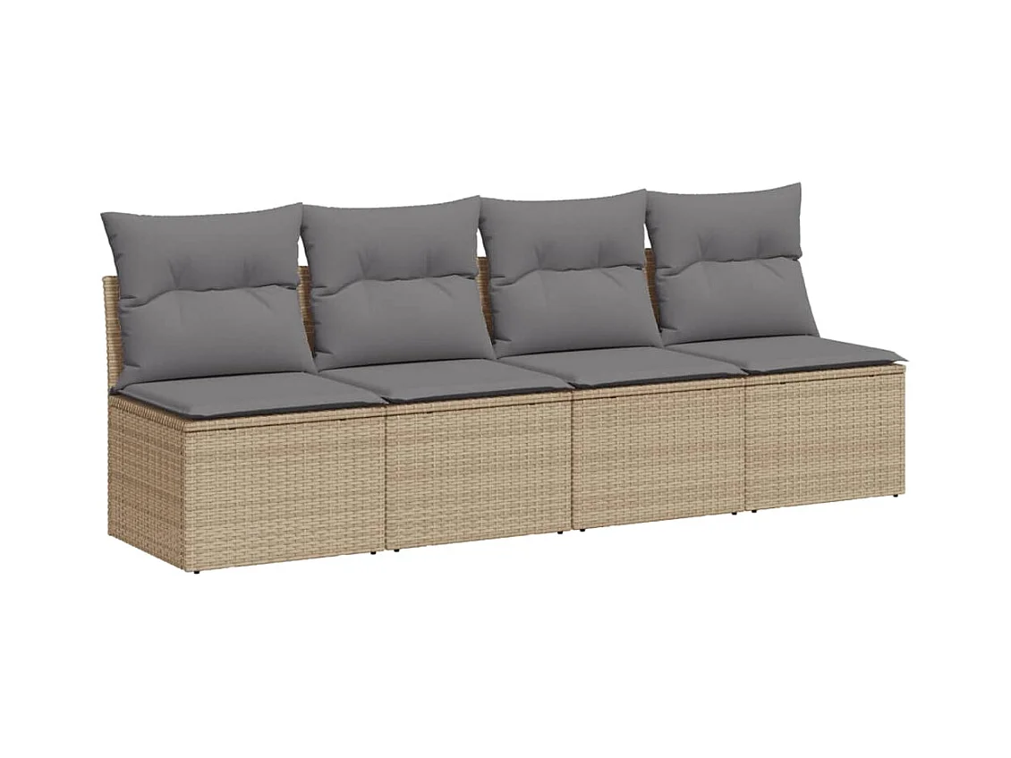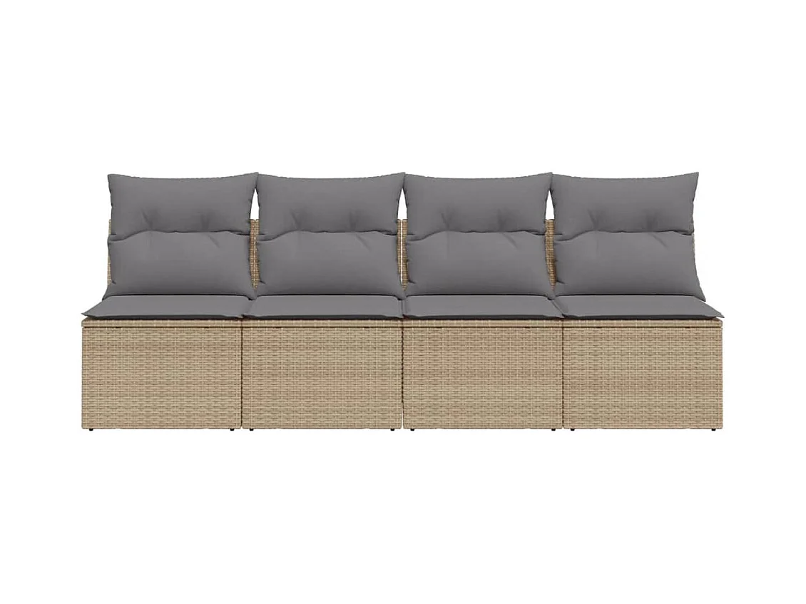 Sofá de jardín de 4 plazas con cojines de resina trenzada beige