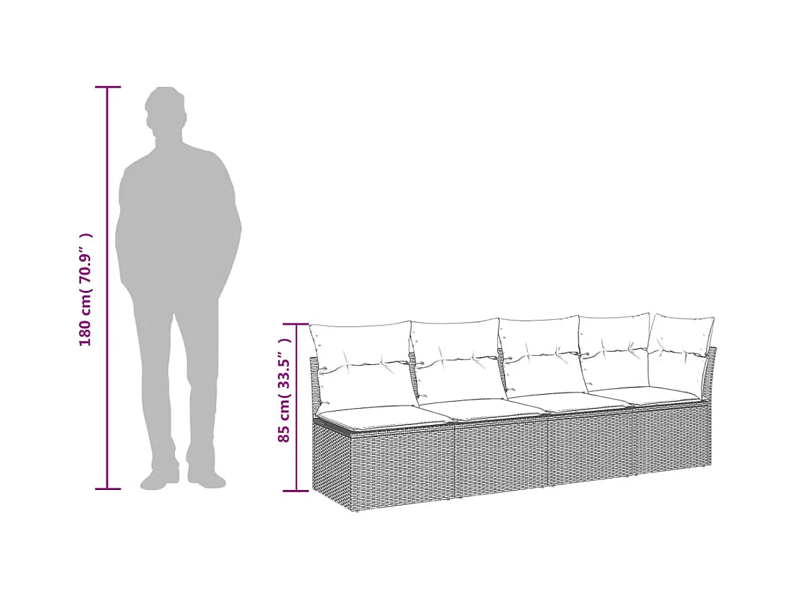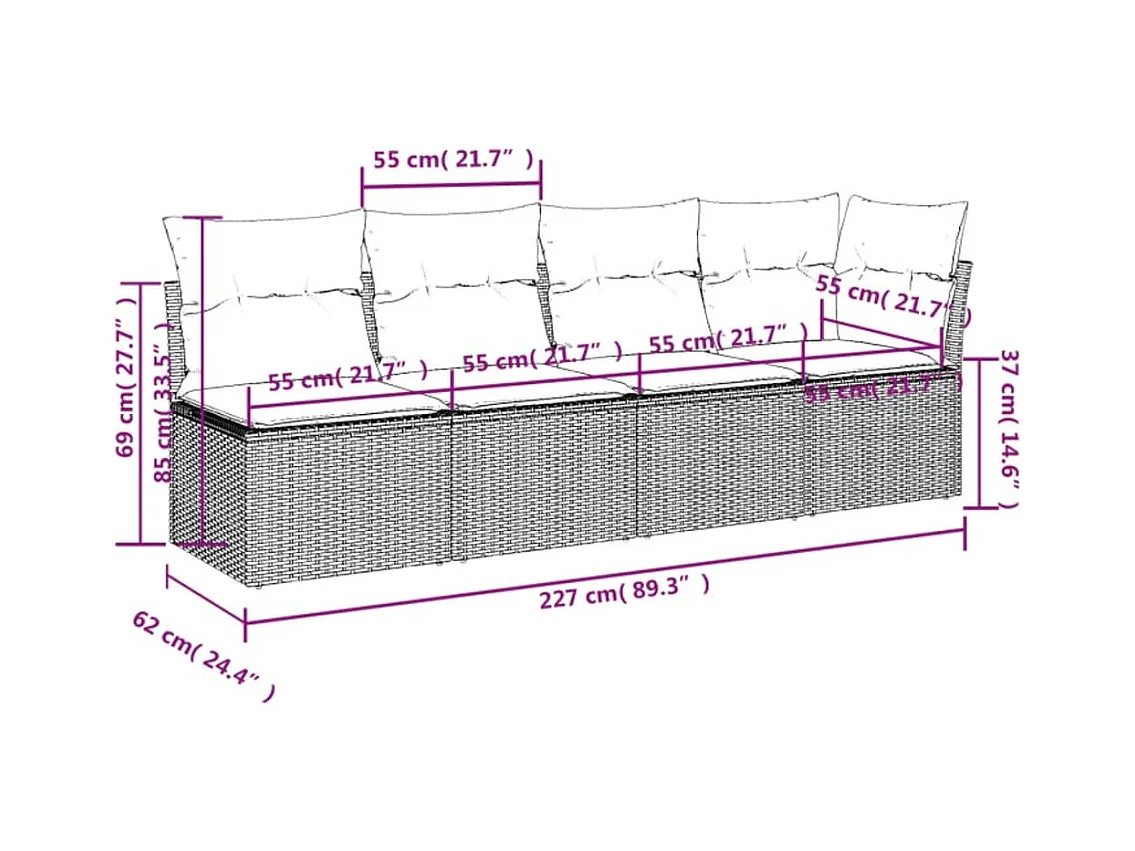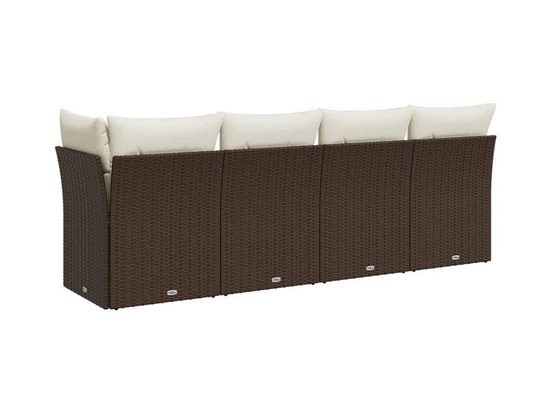 Sofá de jardín de 4 plazas con cojines de resina trenzada marrón
