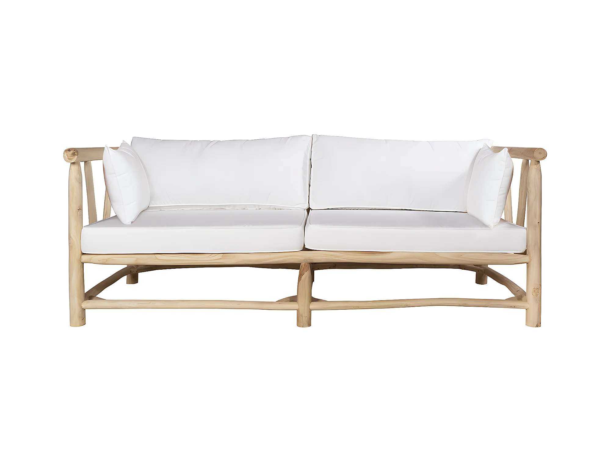 Sofá de jardín de teca con cojines - Natural claro y blanco TULUM