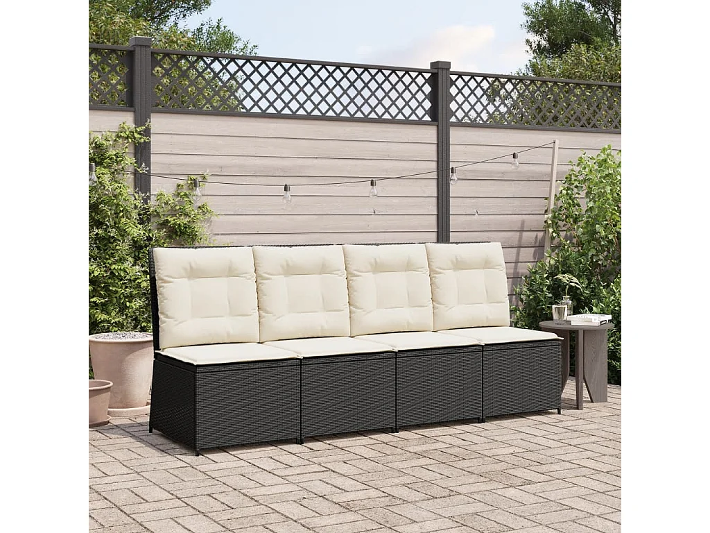 Sofá de jardín reclinable con cojines de resina tejida en negro