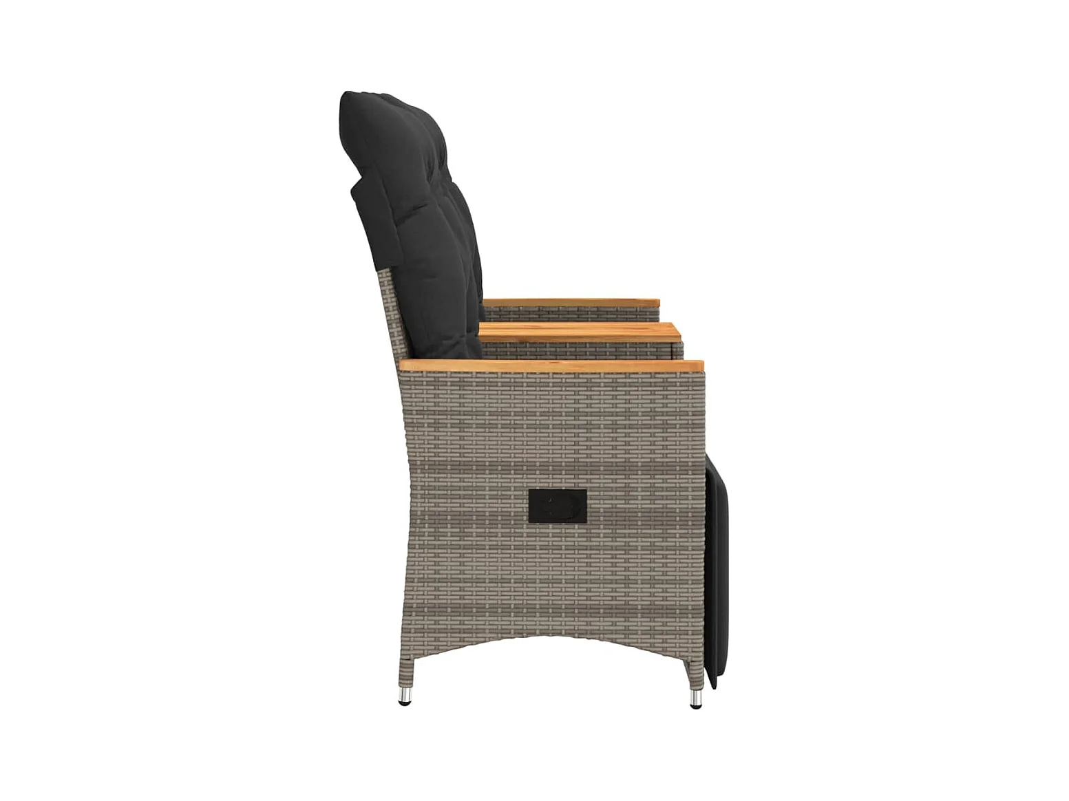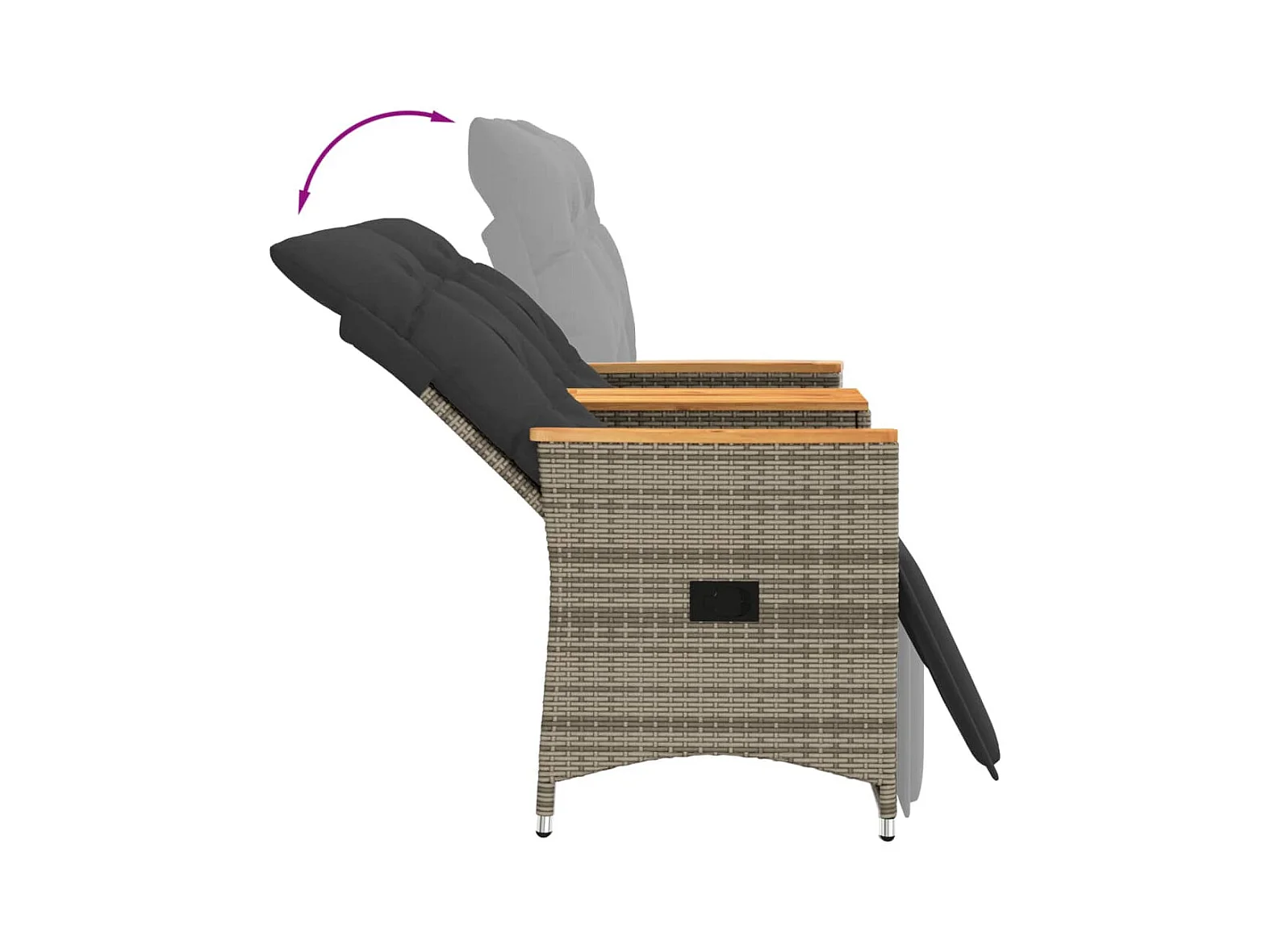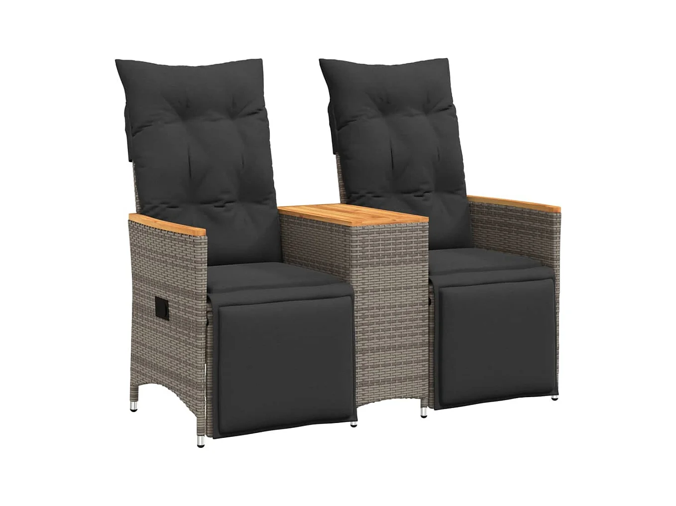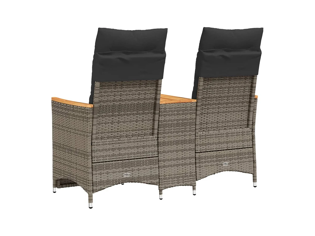 Sofá de jardín reclinable de 2 plazas con mesa de polirratán gris