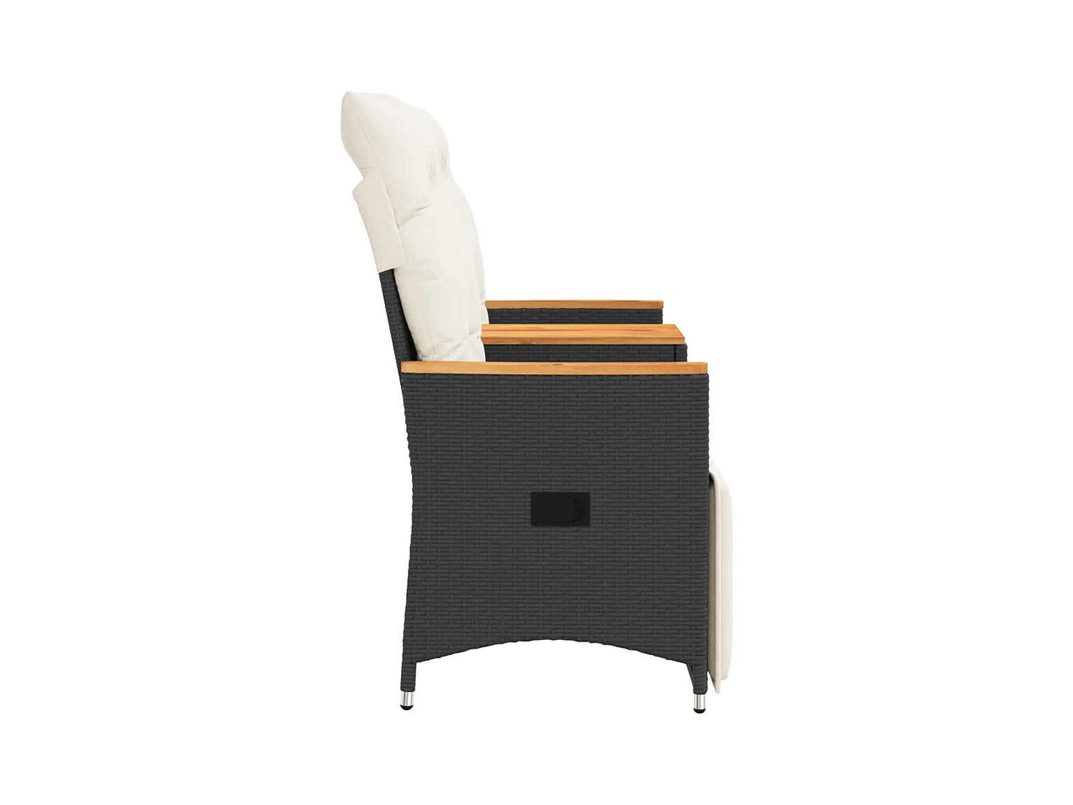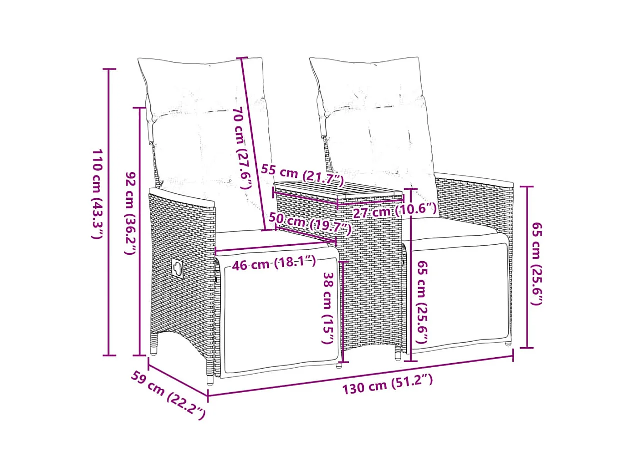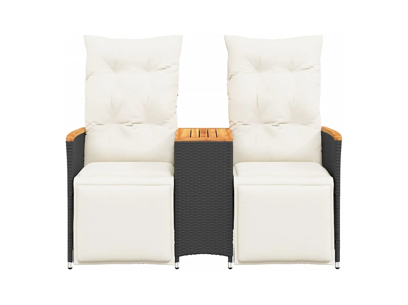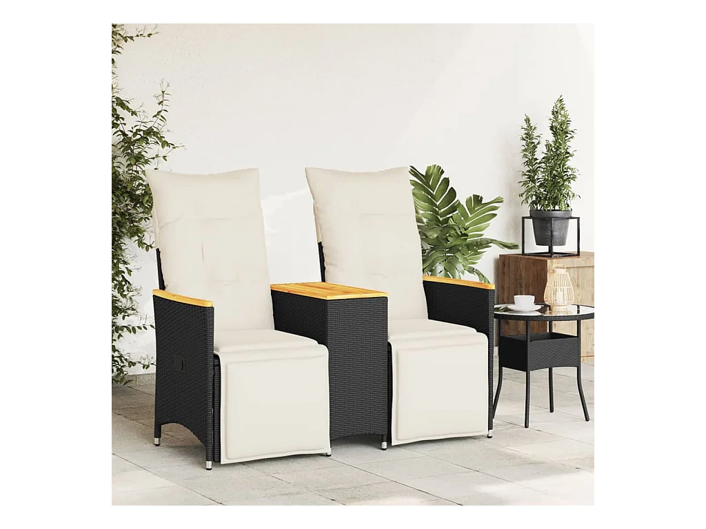 Sofá de jardín reclinable de 2 plazas con mesa de polirratán negro