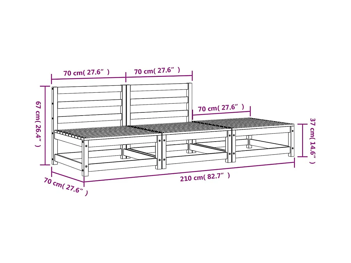 Sofá de jardín sin reposabrazos reposapiés de madera de pino impregnada