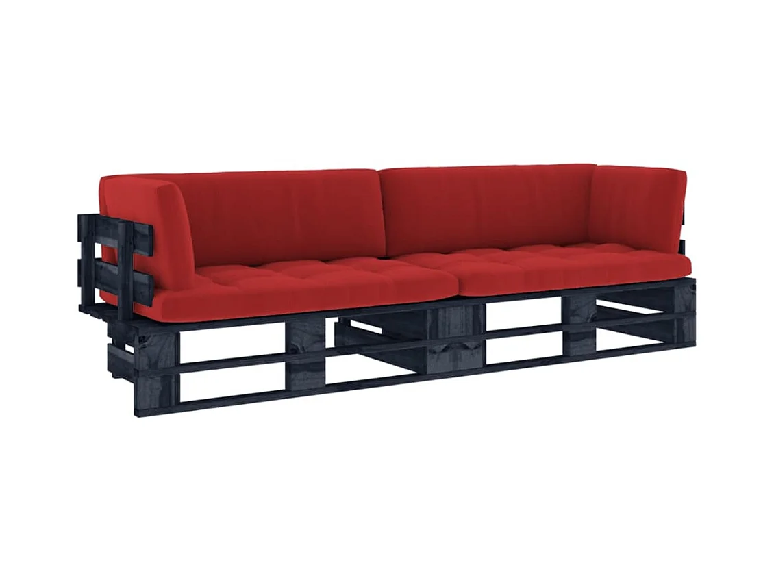 Sofá de palets 2 plazas cojines madera pino impregnada negro