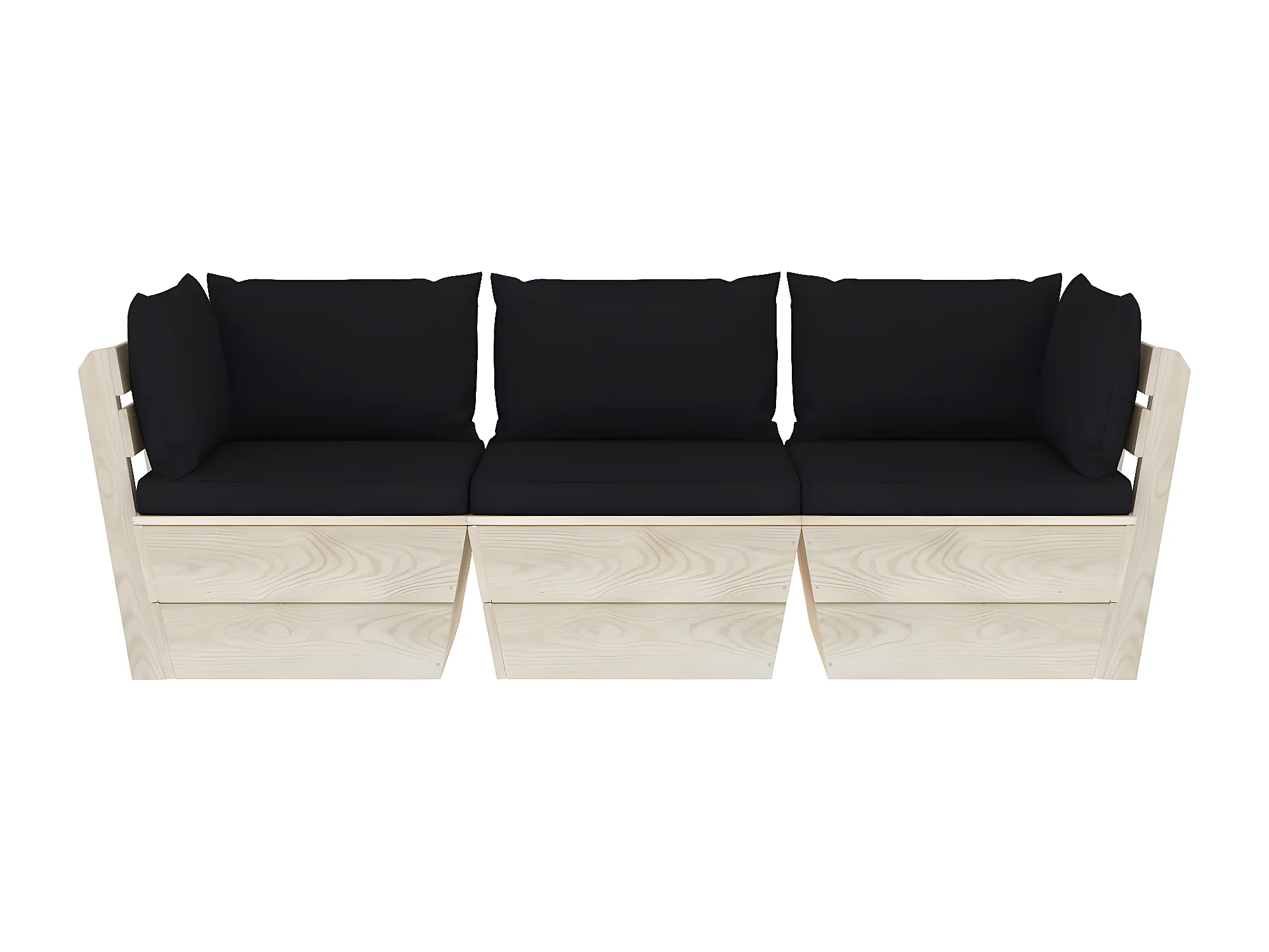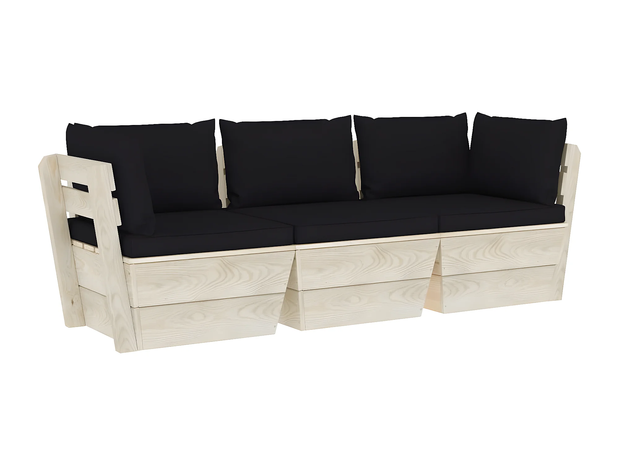 Sofá de palets de jardín 3 plazas con cojines madera de abeto