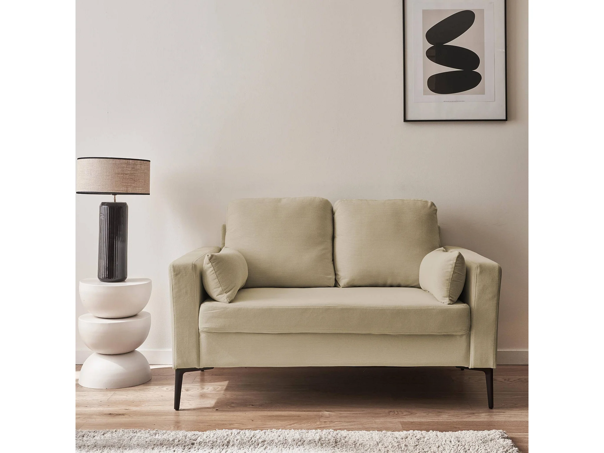 Sofá de pana con patas de metal de 2 plazas gris beige