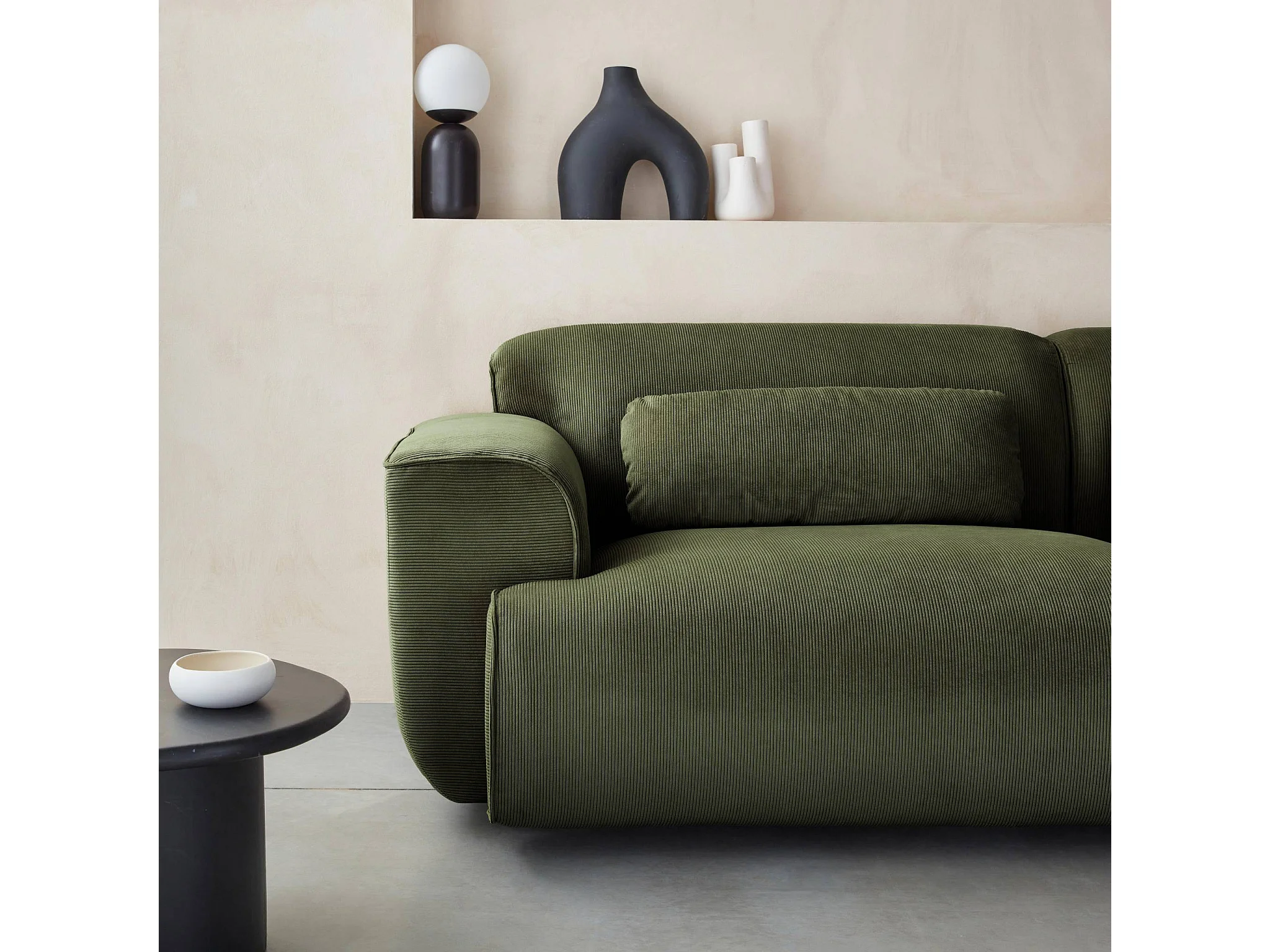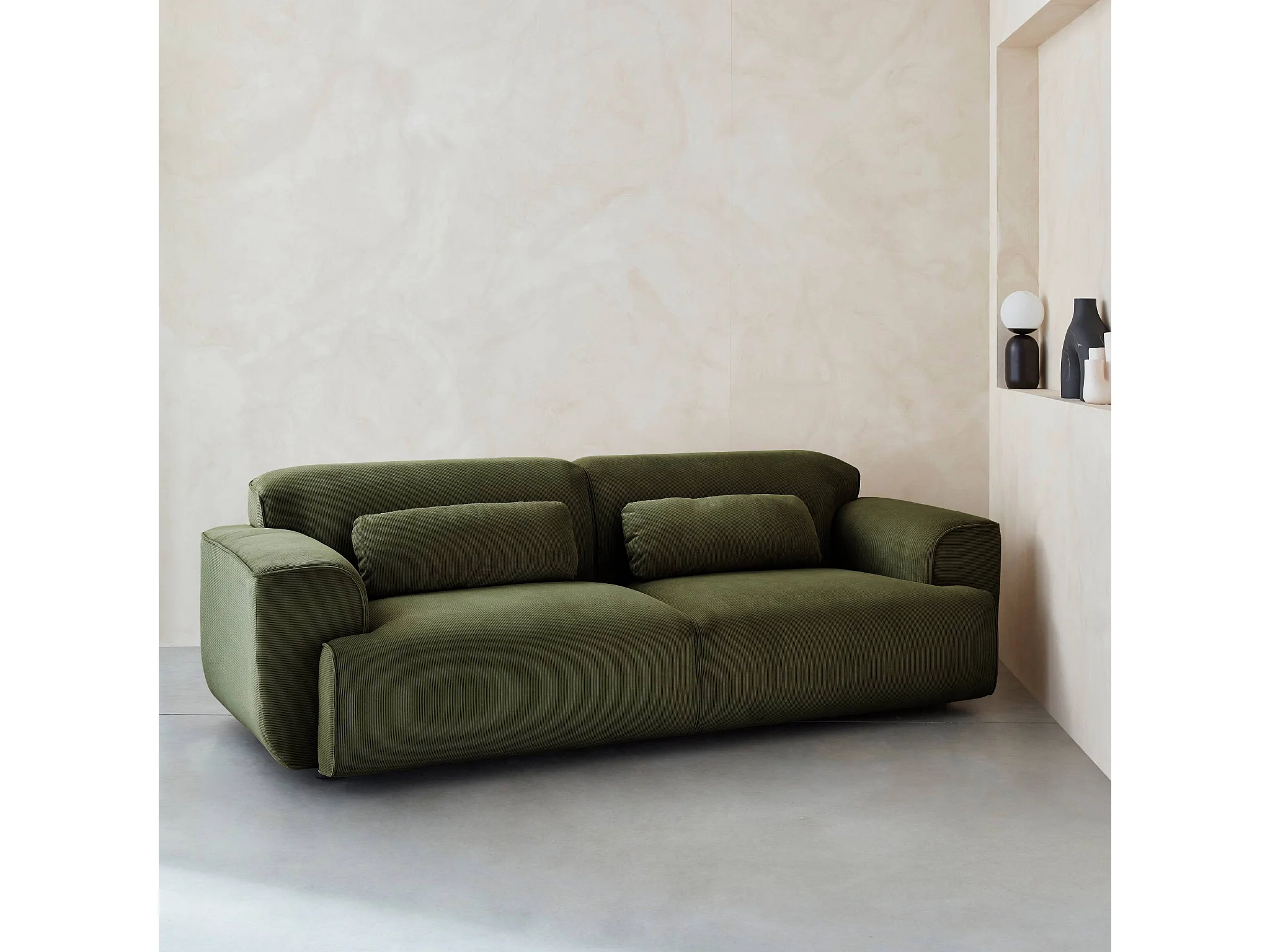 Sofá en terciopelo pana fina de 3 plazas verde