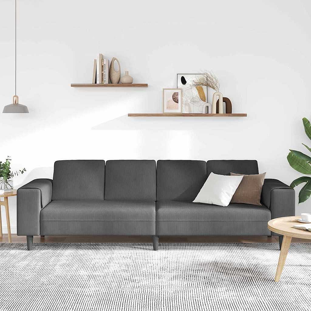 Sofá de tela con cojín Tejido de pana gris oscuro