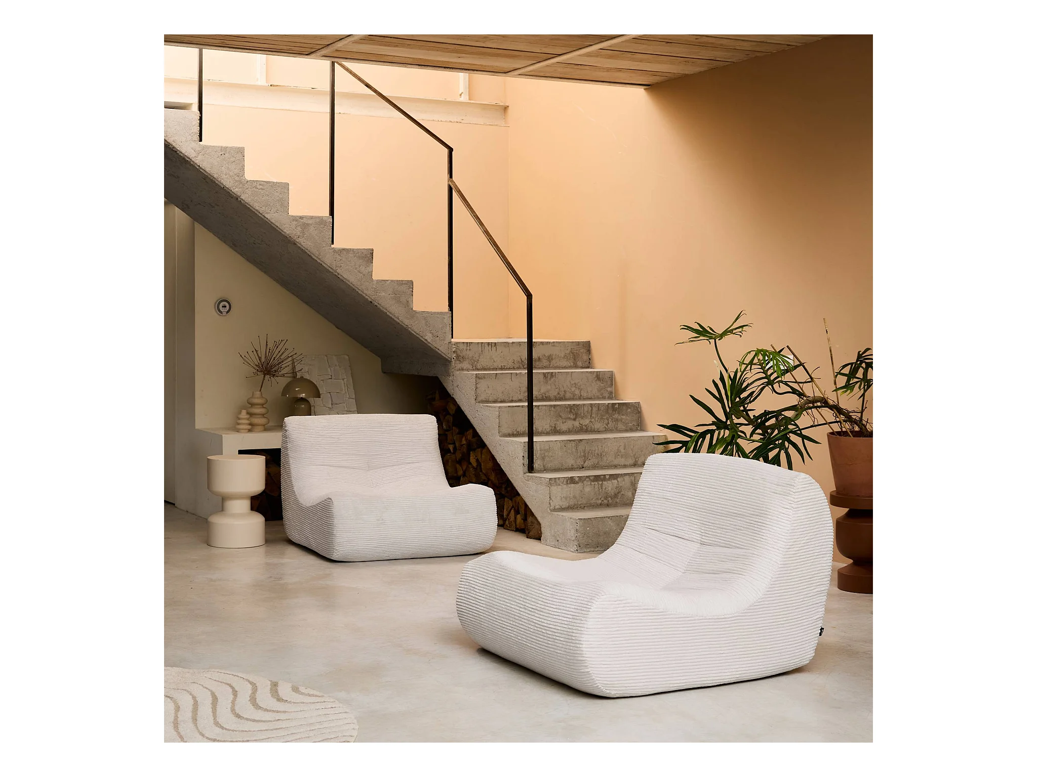 Sillón nórdico de tejido efecto aterciopelado texturizado beige y madera ISKO