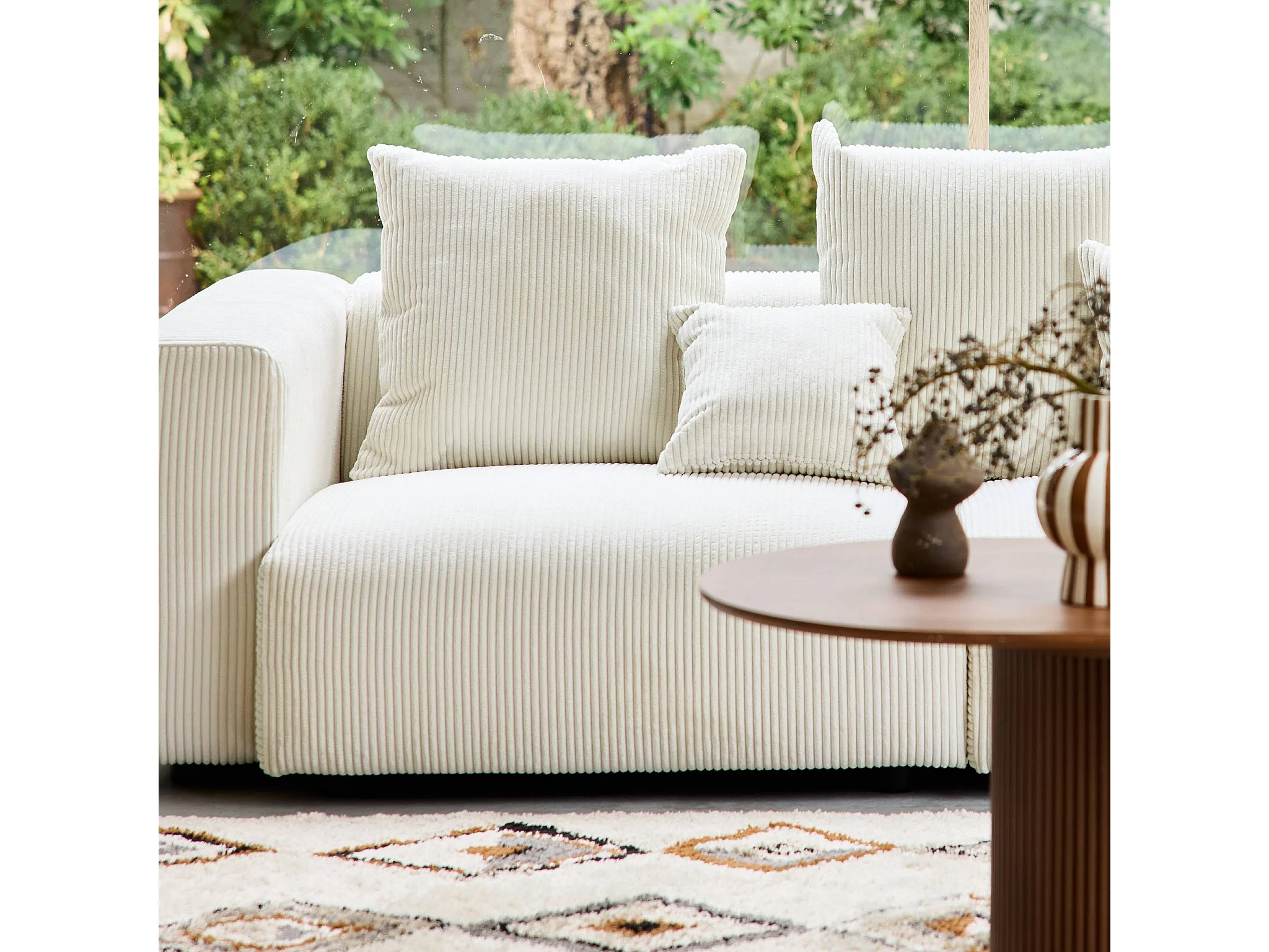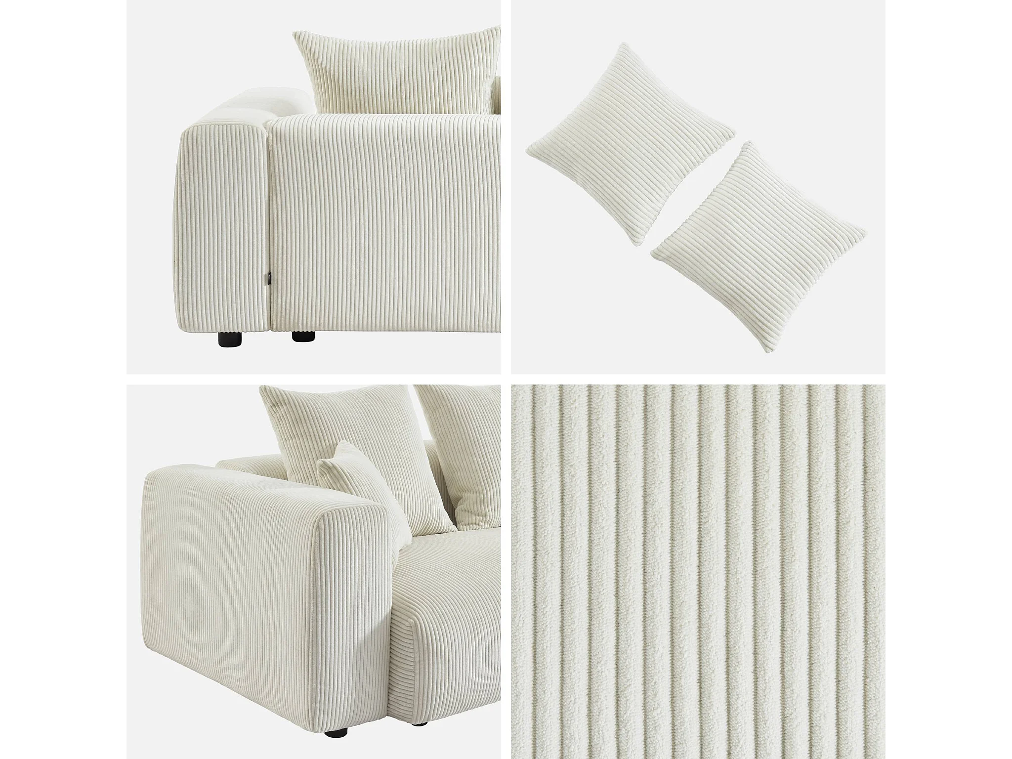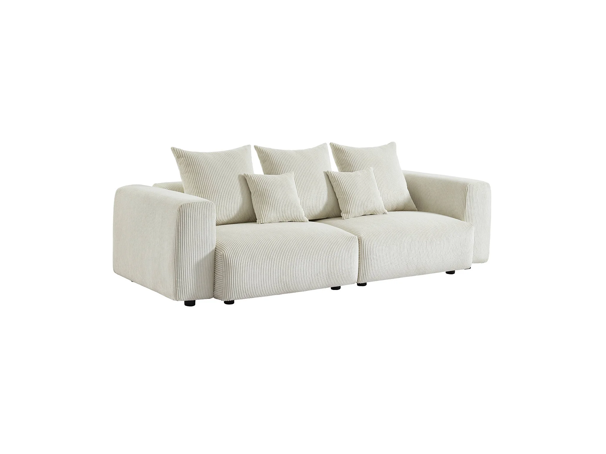 Sofá desenfundable de 3 plazas de terciopelo de pana gruesa crema