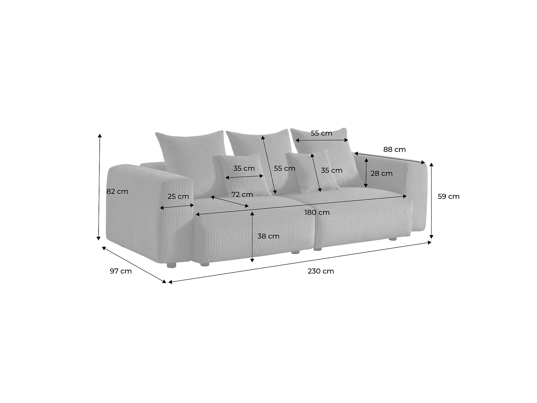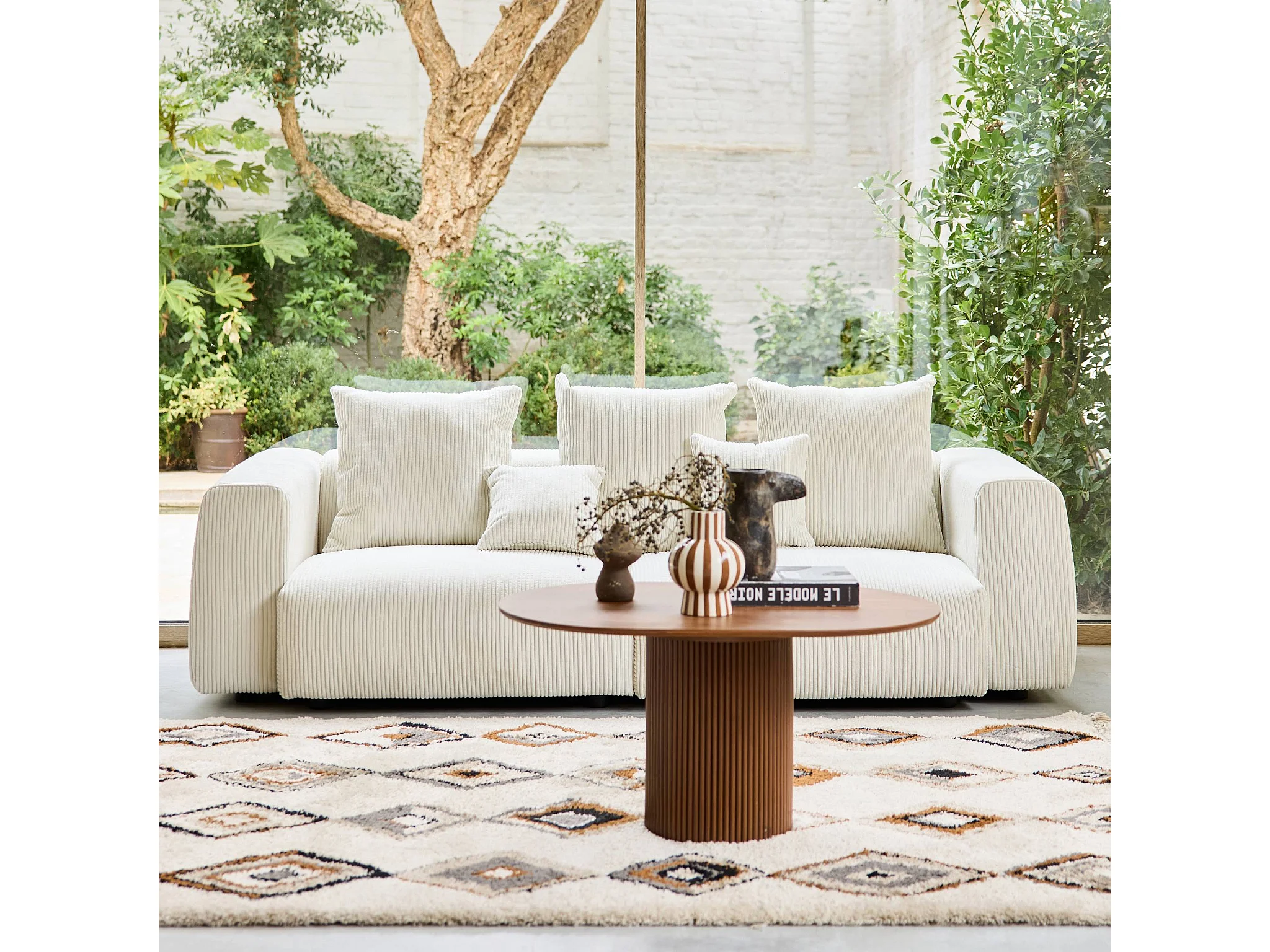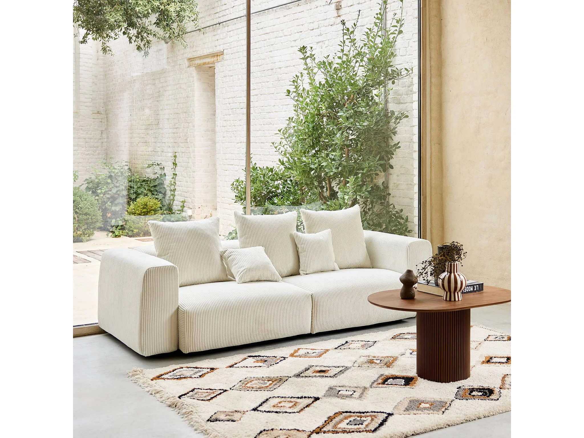 Sofá desenfundable de 3 plazas de terciopelo de pana gruesa crema