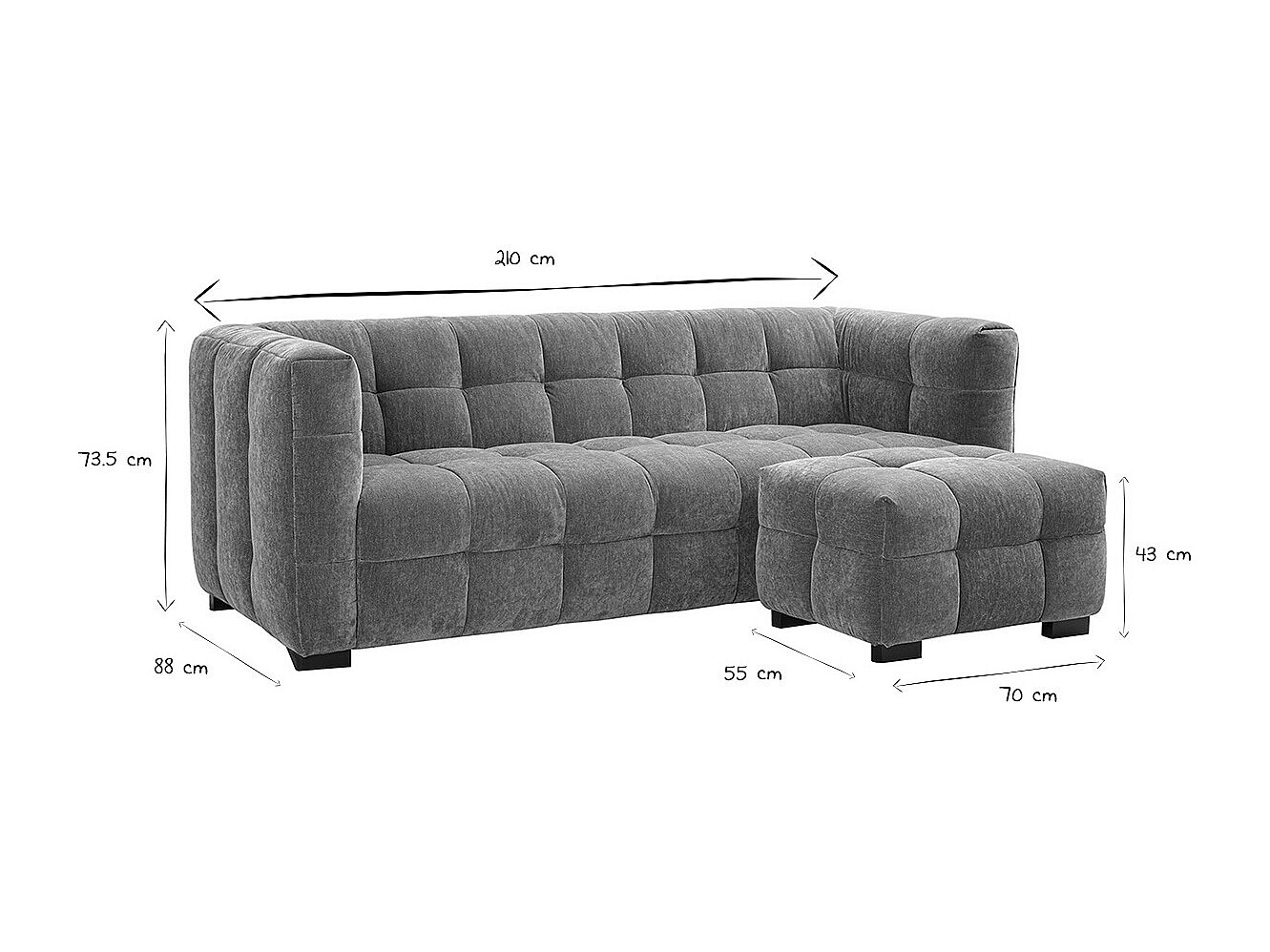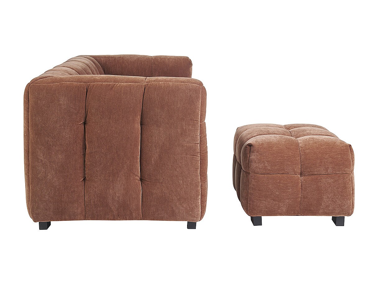 Sofá de 3 plazas con taburete de terciopelo marrón 180 cm