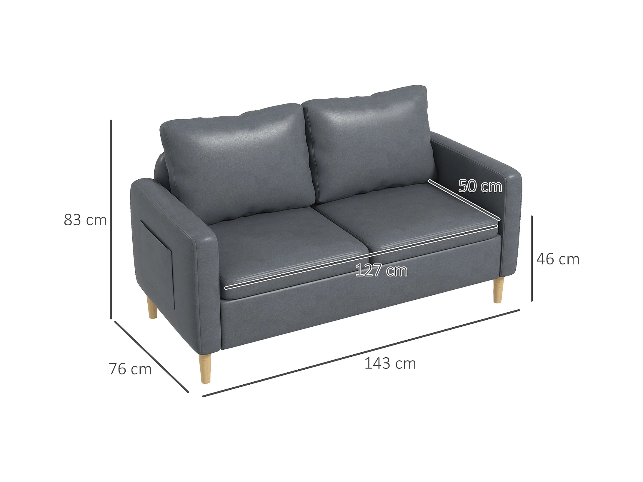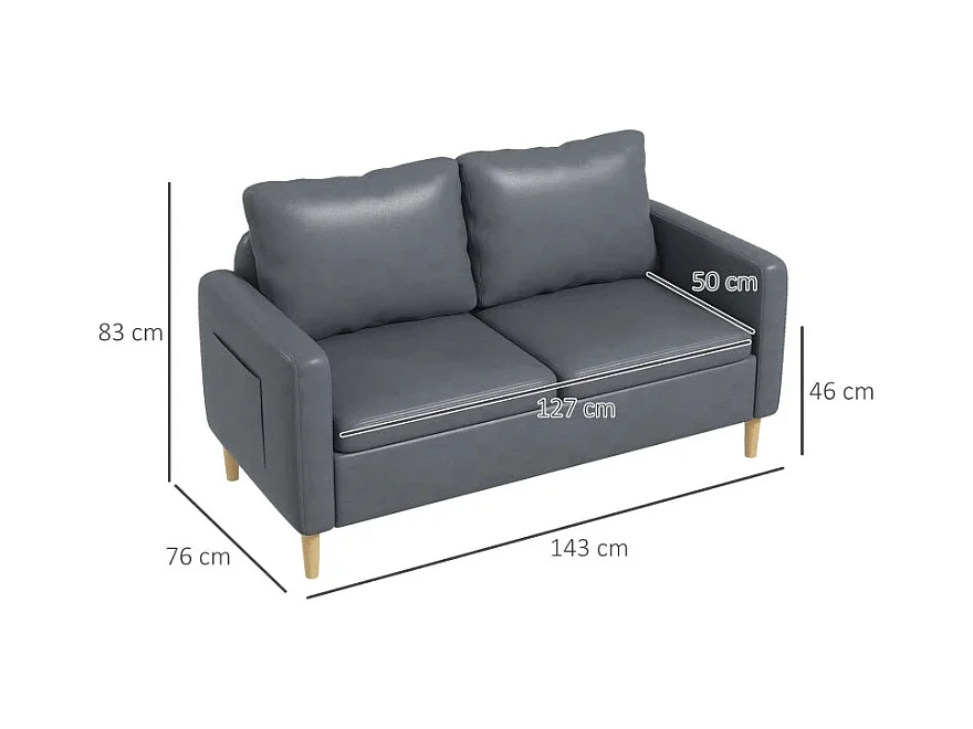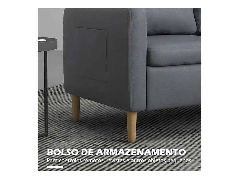 Sofá recto gris de 2 plazas con almacenaje integrado y cojines extraíbles - 117x62x78cm
