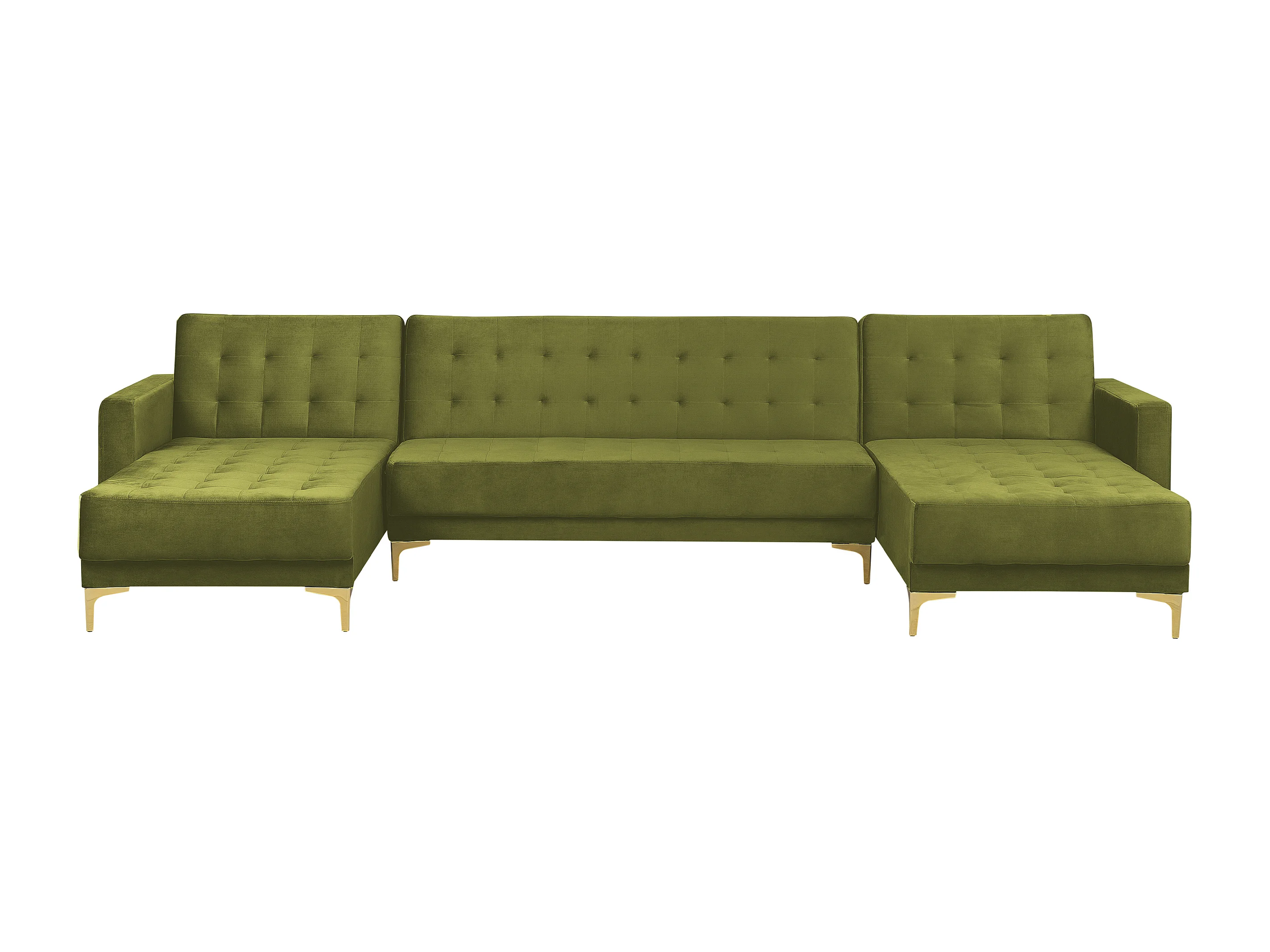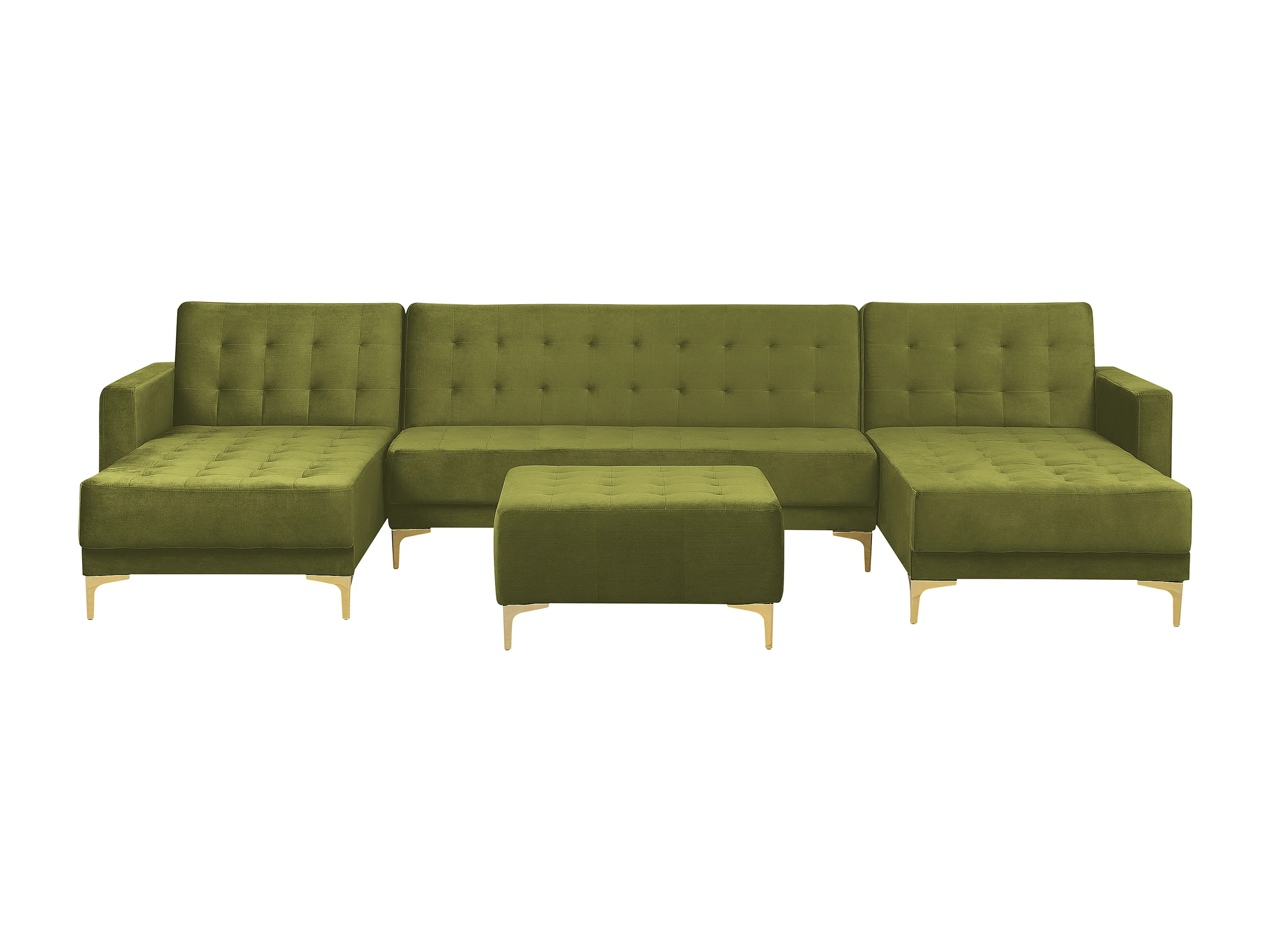 Sofá cama modular en U ABERDEEN Terciopelo Verde con otomana 5 plazas