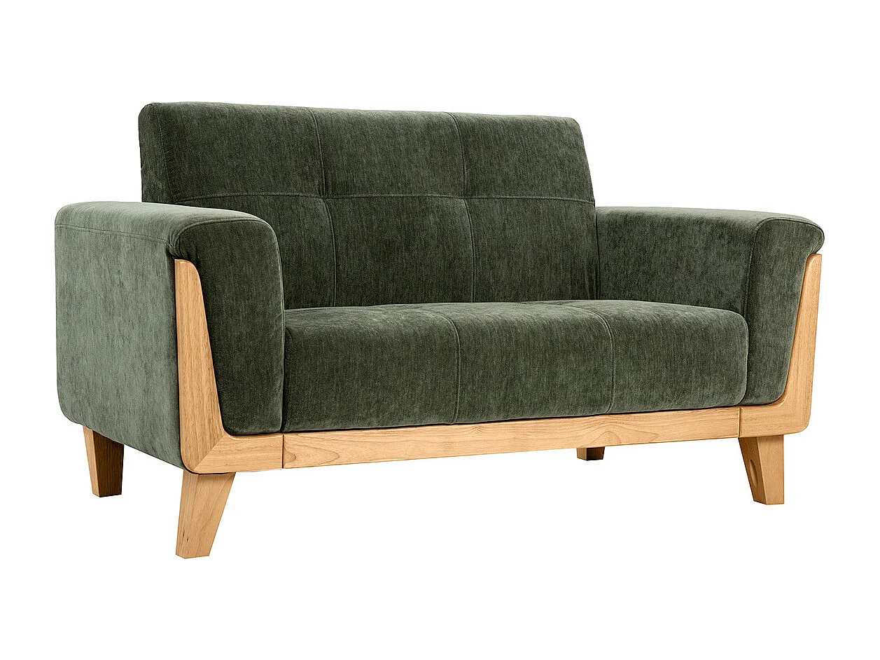 Sofá escandinavo de 2 plazas en tela de terciopelo verde caqui y madera clara FJORD