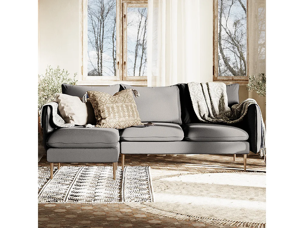 Sofá esquinero 89x210x90 cm gris elegante madera l