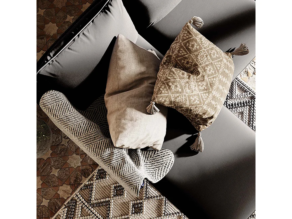 Sofá de 3 plazas con chaise longue - 175 x 129 x 90 cm - con almacenaje + 2 cojines - algodón + lino - gris claro