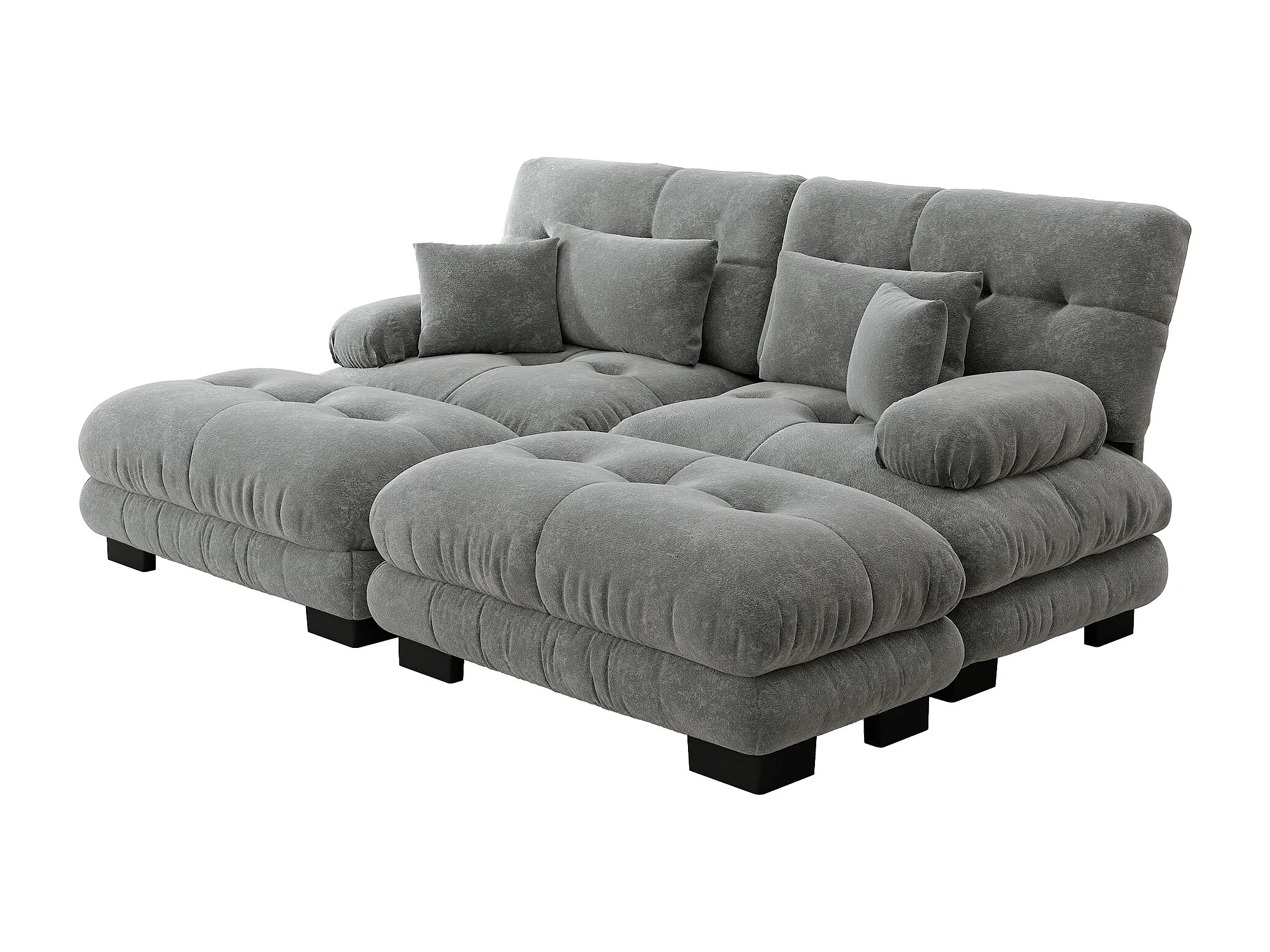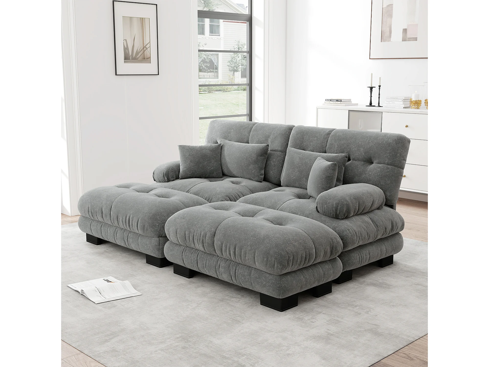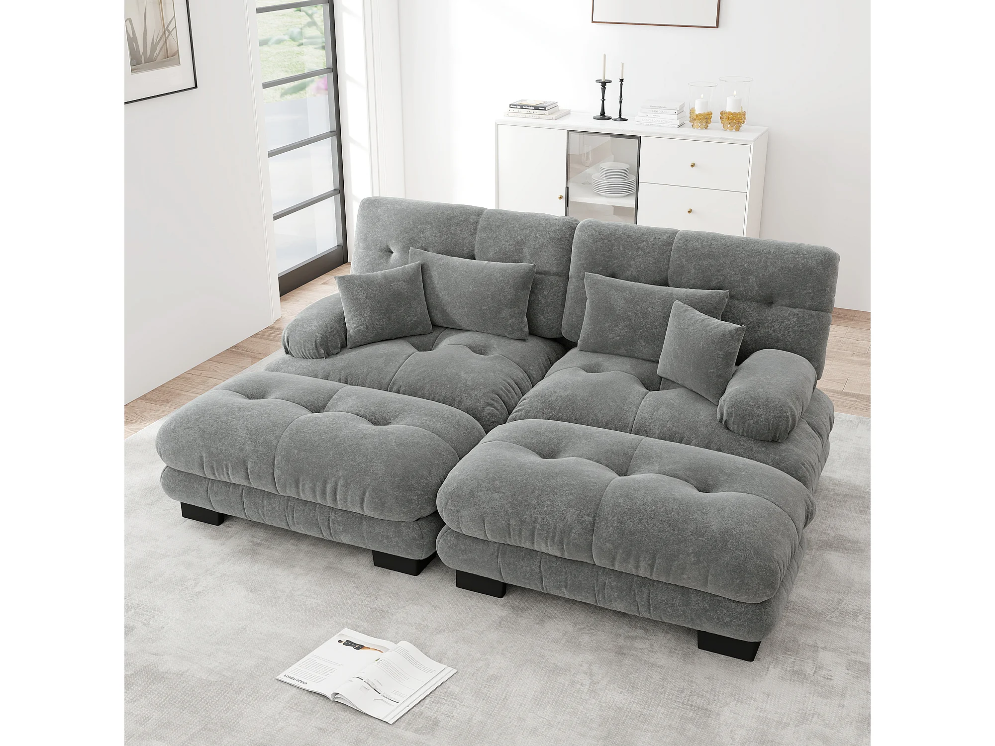 Sofá esquinero Cloud de 2 plazas en chenilla gris con 2 cojines y 2 otomanas para salón
