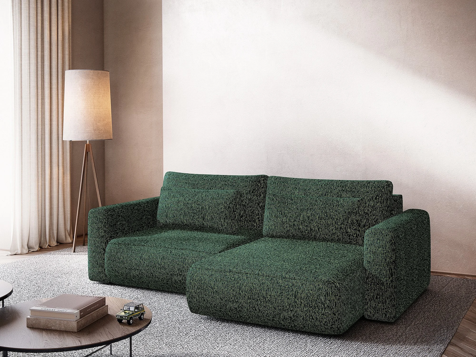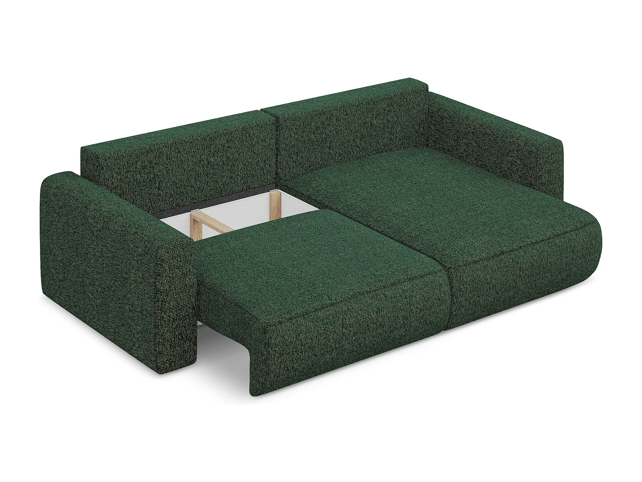 Sofá esquinero convertible 2,5 plazas derecho de tela texturizada verde - KAPUA
