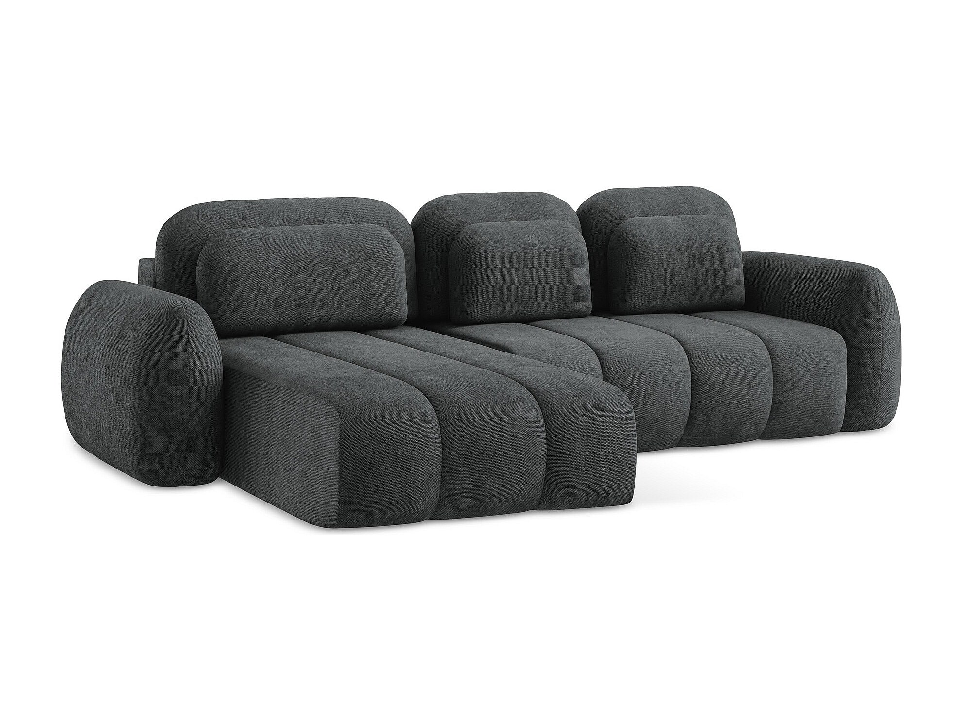 Sofá esquinero convertible 3 plazas izquierdo de tela chenilla gris oscuro - PELE