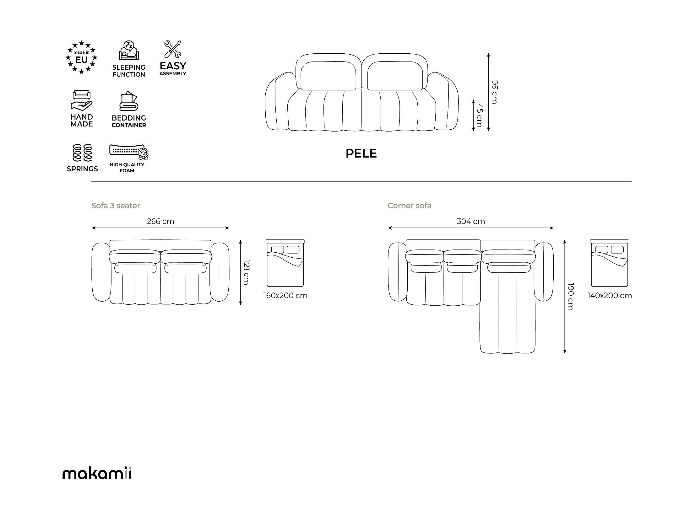 Sofá esquinero convertible 3 plazas izquierdo de tela chenilla gris claro - PELE