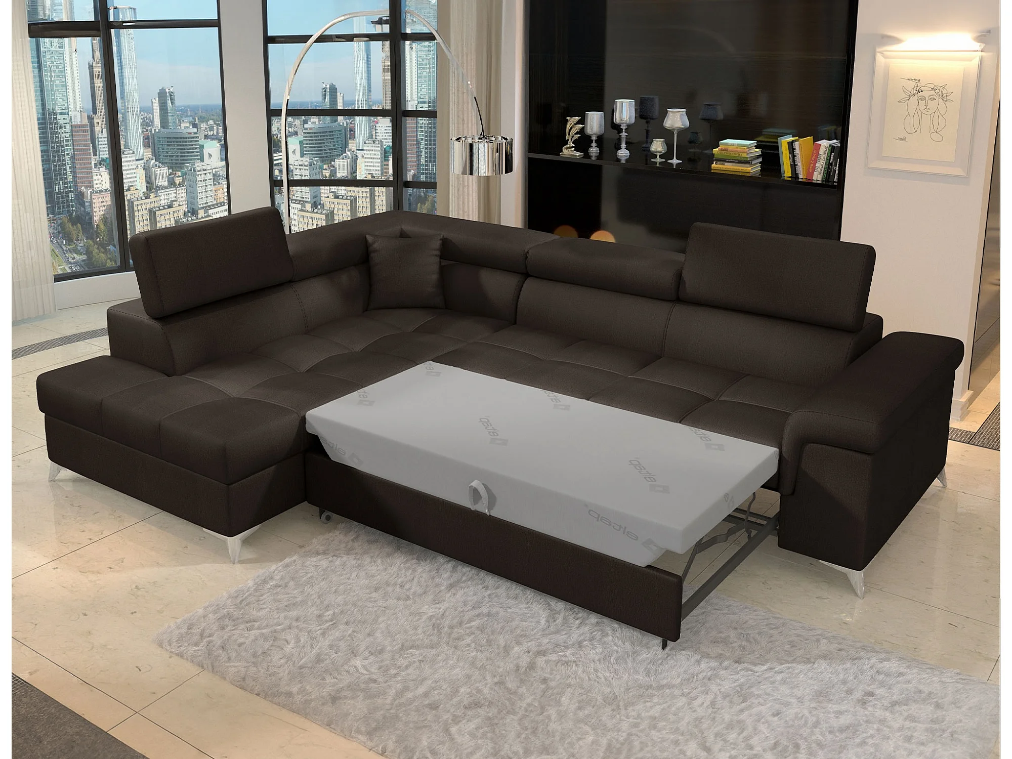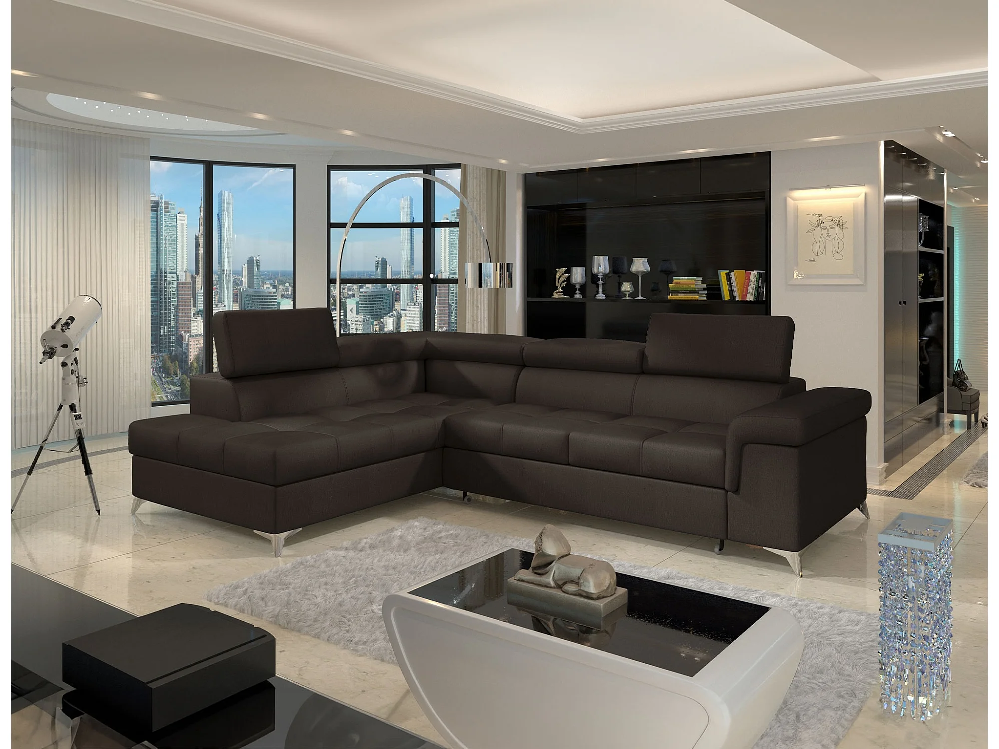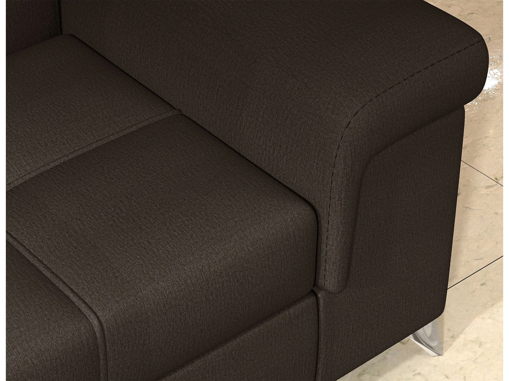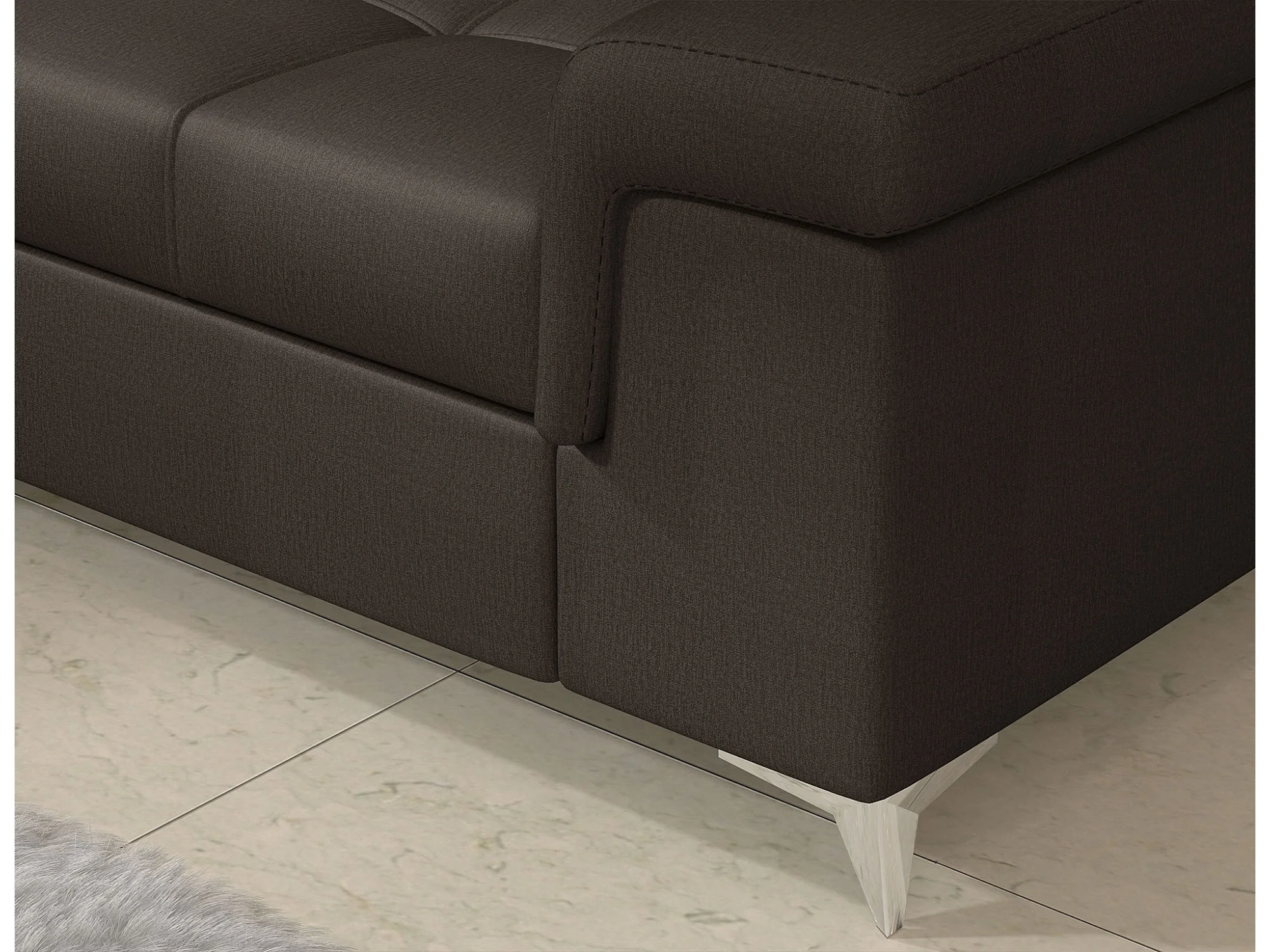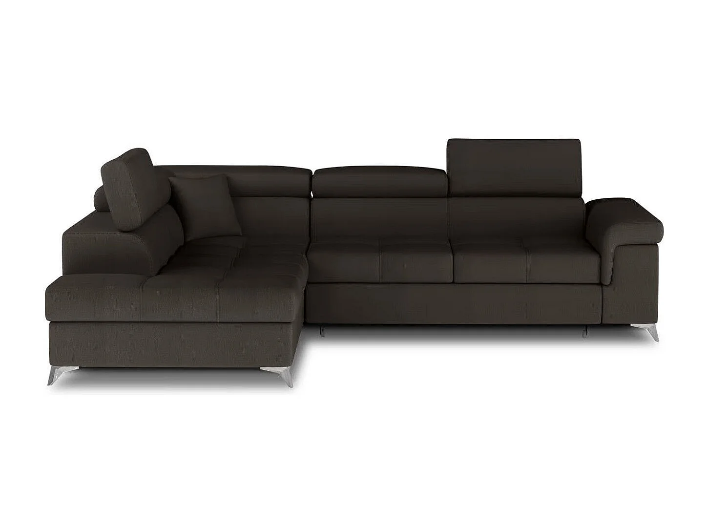 Sofá esquinero convertible de terciopelo MARIDO - Almacenamiento y reposacabezas ajustables-Marrón oscuro-Ángulo izquierdo