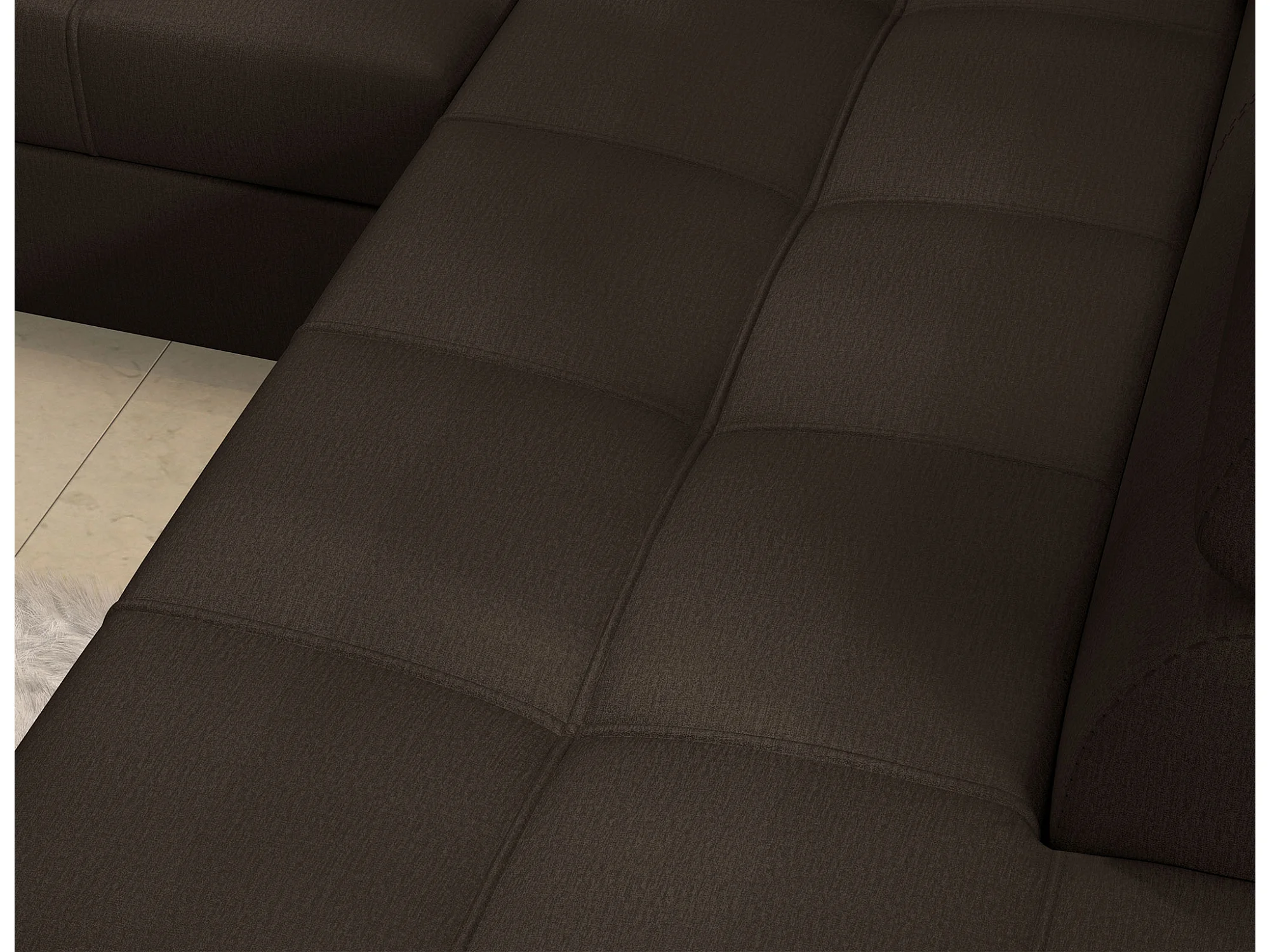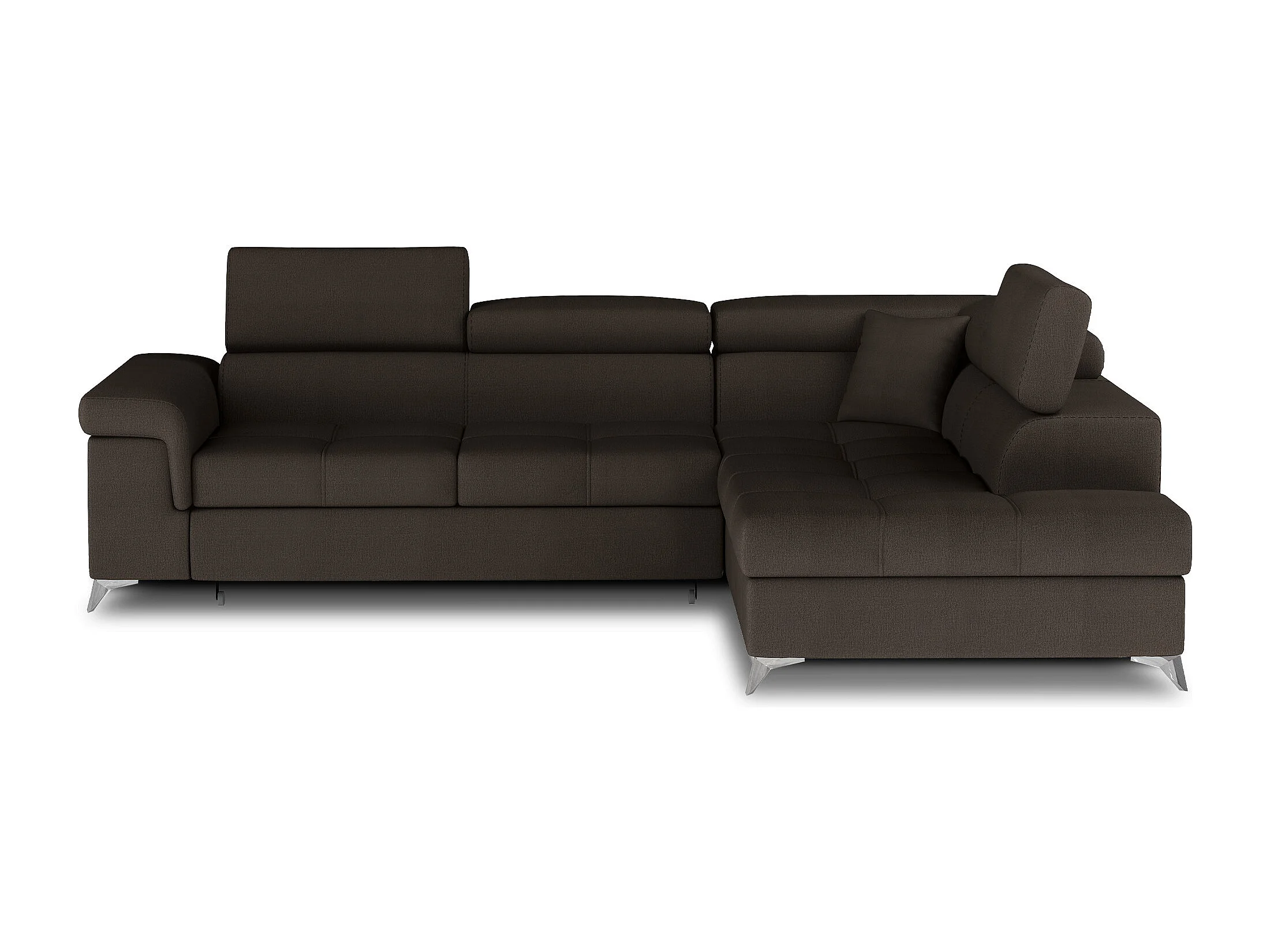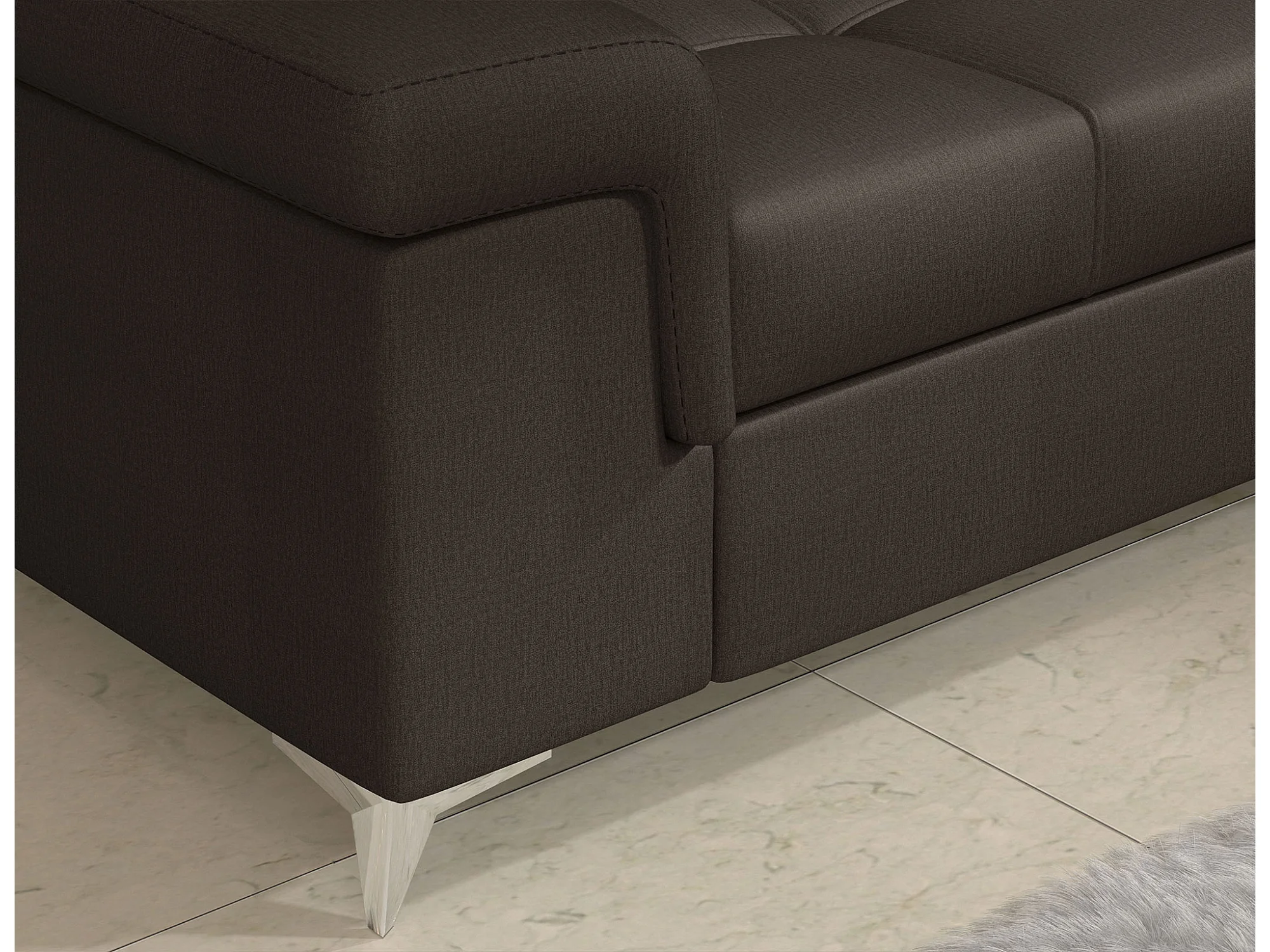 Sofá esquinero convertible de terciopelo MARIDO - Almacenamiento y reposacabezas ajustables-Marrón oscuro-Ángulos rectos