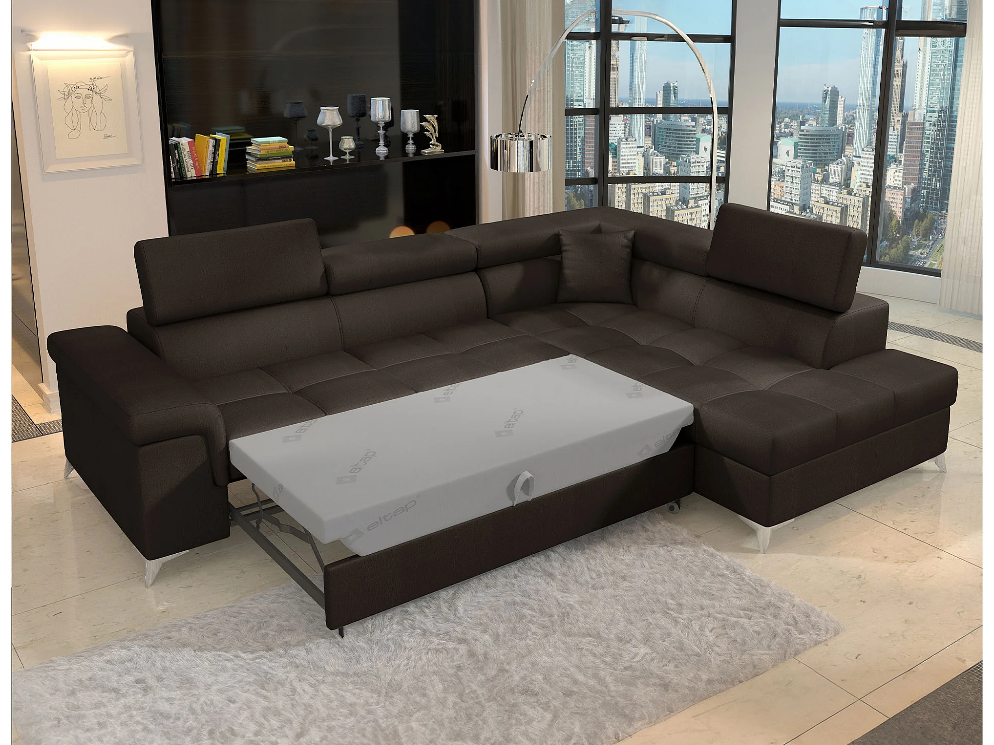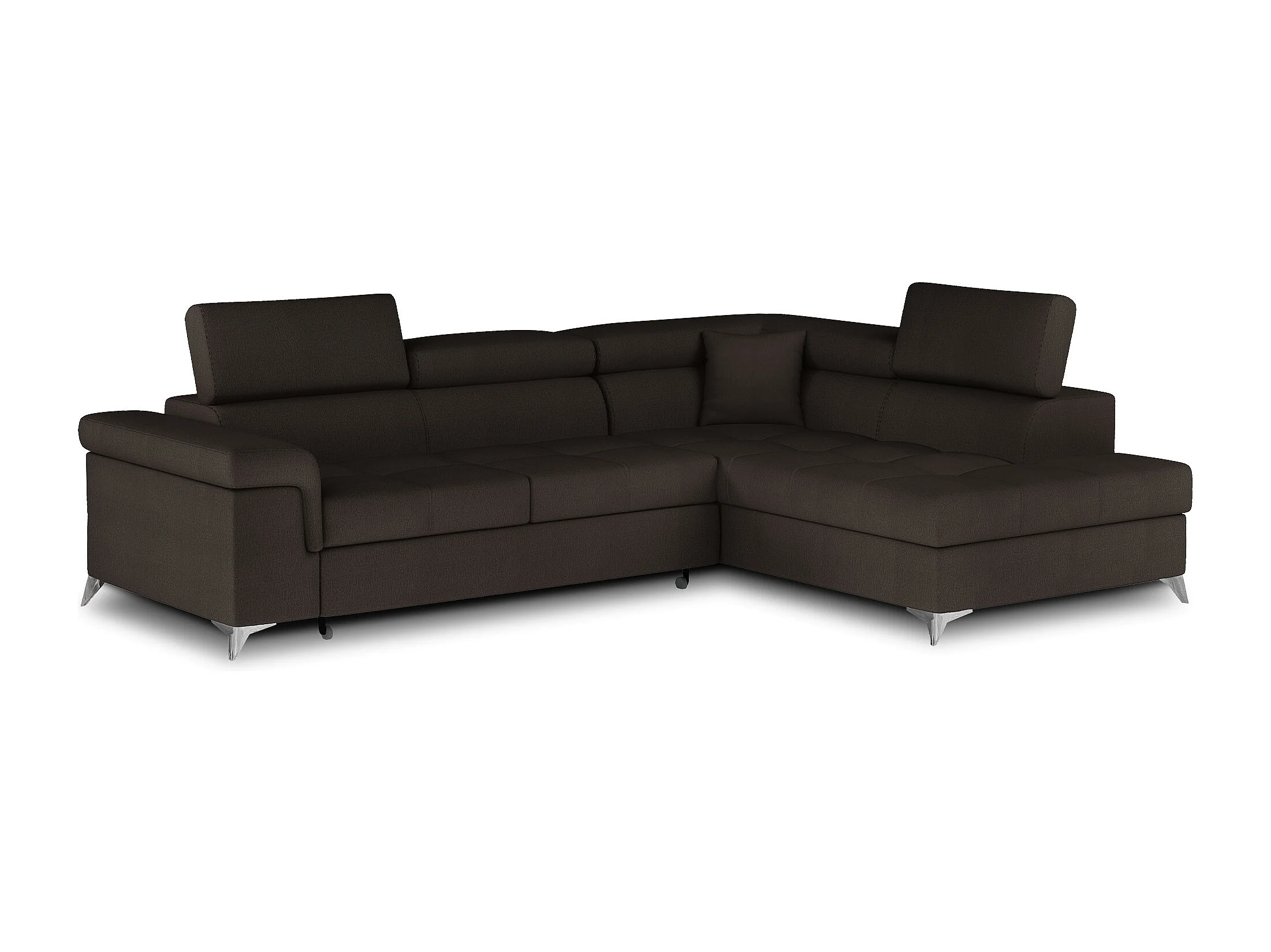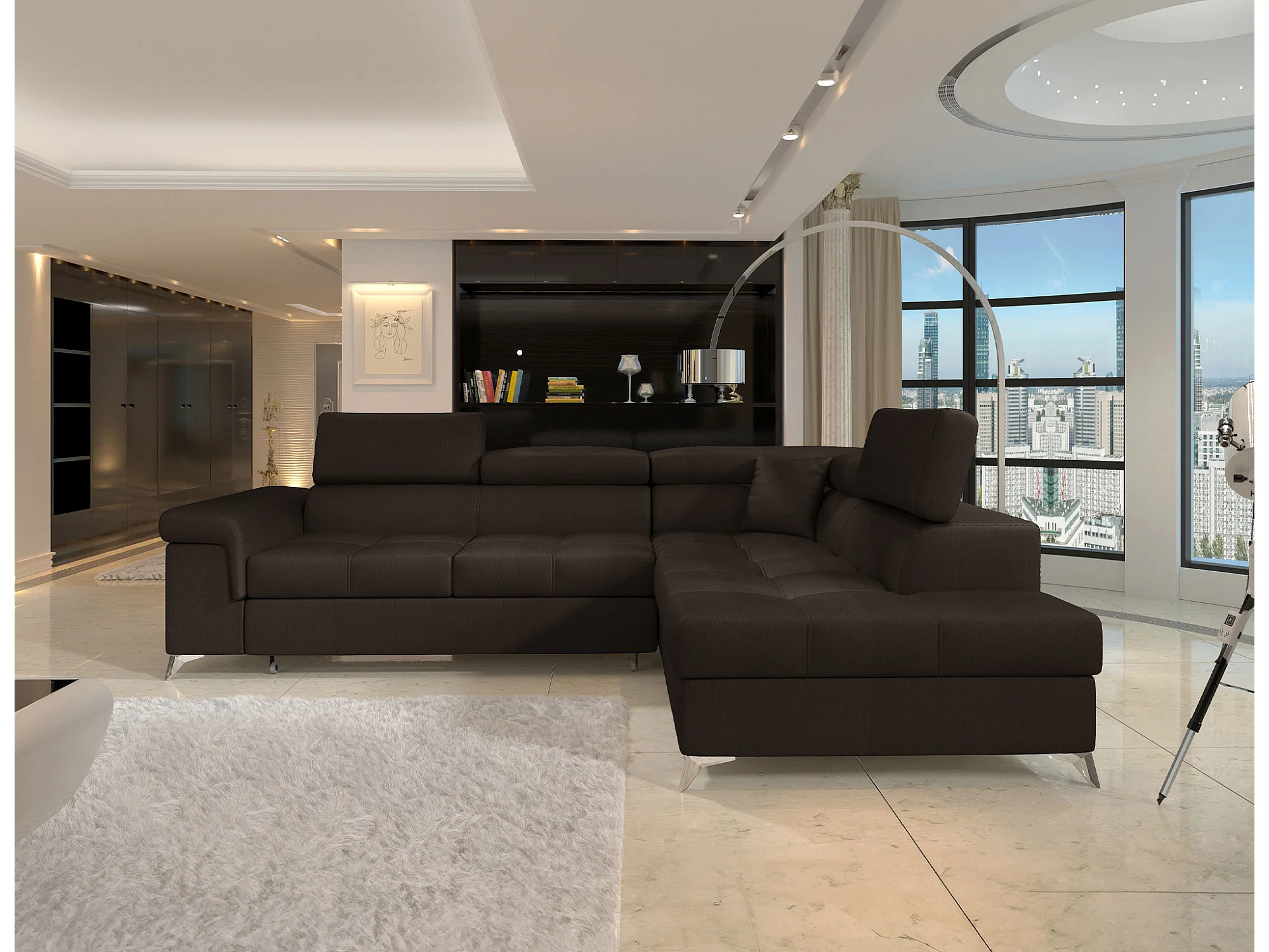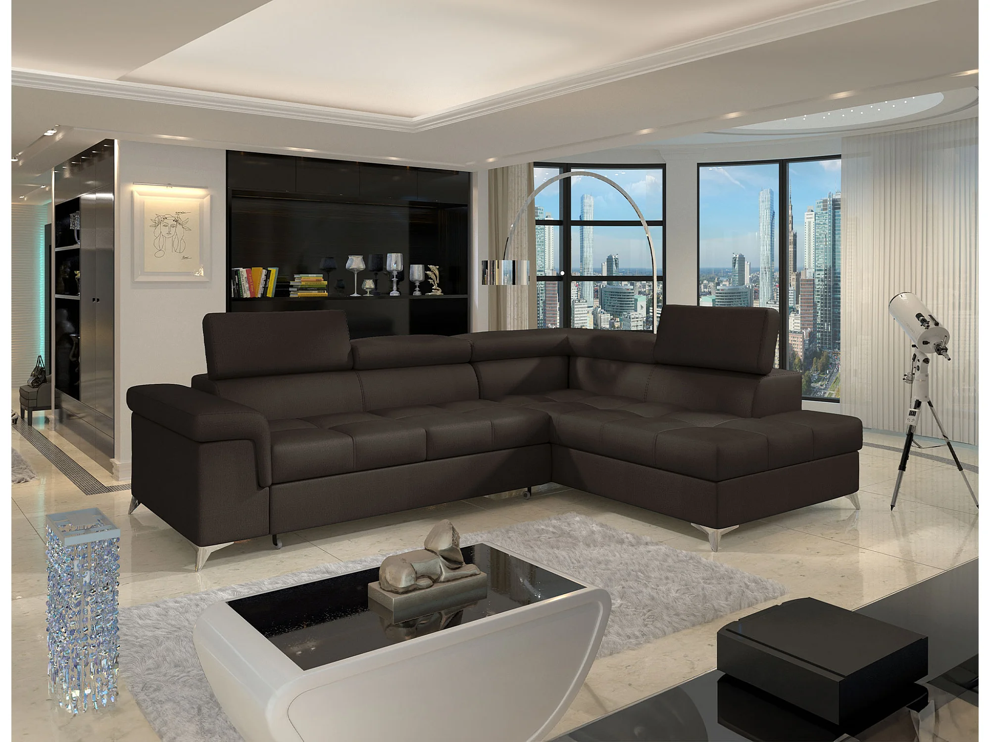 Sofá esquinero convertible de terciopelo MARIDO - Almacenamiento y reposacabezas ajustables-Marrón oscuro-Ángulos rectos